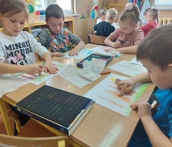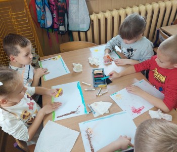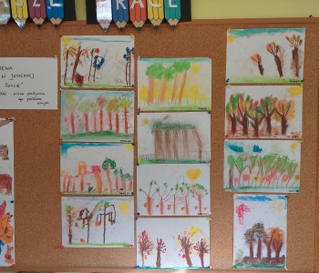 Jesień daje nam wspaniałe możliwości do tworzenia prac plastycznych i przedstawienia polskiej, złotej jesieni w różnych odsłonach . Podczas realizowania tematu kompleksowego „Co robią zwierzęta w jesienią ?” dzieci z grupy Myszki Miki wykonały pracę plastyczną pt.: „Drzewa w jesiennej szacie” techniką pastelu.
