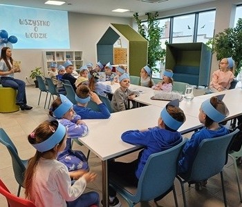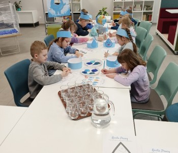 Grupa Czerwonego Kapturka skorzystała z zaproszenia Miejsko – Gminnej Biblioteki Publicznej w Margoninie i wybrała się na obchody “ Dnia wody”, gdzie dzieci miały okazję wysłuchać bajki “Przygody Fenka – Woda to skarb”, obejrzeć prezentację multimedialną oraz stworzyć akwarium przy pomocy farb.