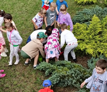 Każde dziecko miało okazję wrzucić garść ziemi do dołka, a następnie wszyscy wspólnie podlewali młode drzewko. Dąb będzie rósł razem z dziećmi – przypominając im o ich pierwszym etapie edukacji i pozostawiając po nich trwały ślad.