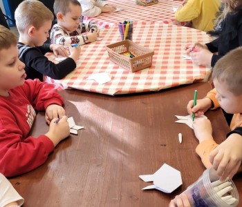 W piątek 31 października dzieci z grupy Czerwonego Kapturka wybrały się z wizytą do Domu Kultury. Spotkanie nasze miało na celu poznanie japońskiej techniki składania papieru czyli origami. Dzieci z wielkim zaangażowaniem obserwowały jak z niewielkiego kawałka papieru można stworzyć zwierzątko bez kleju i nożyczek.