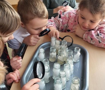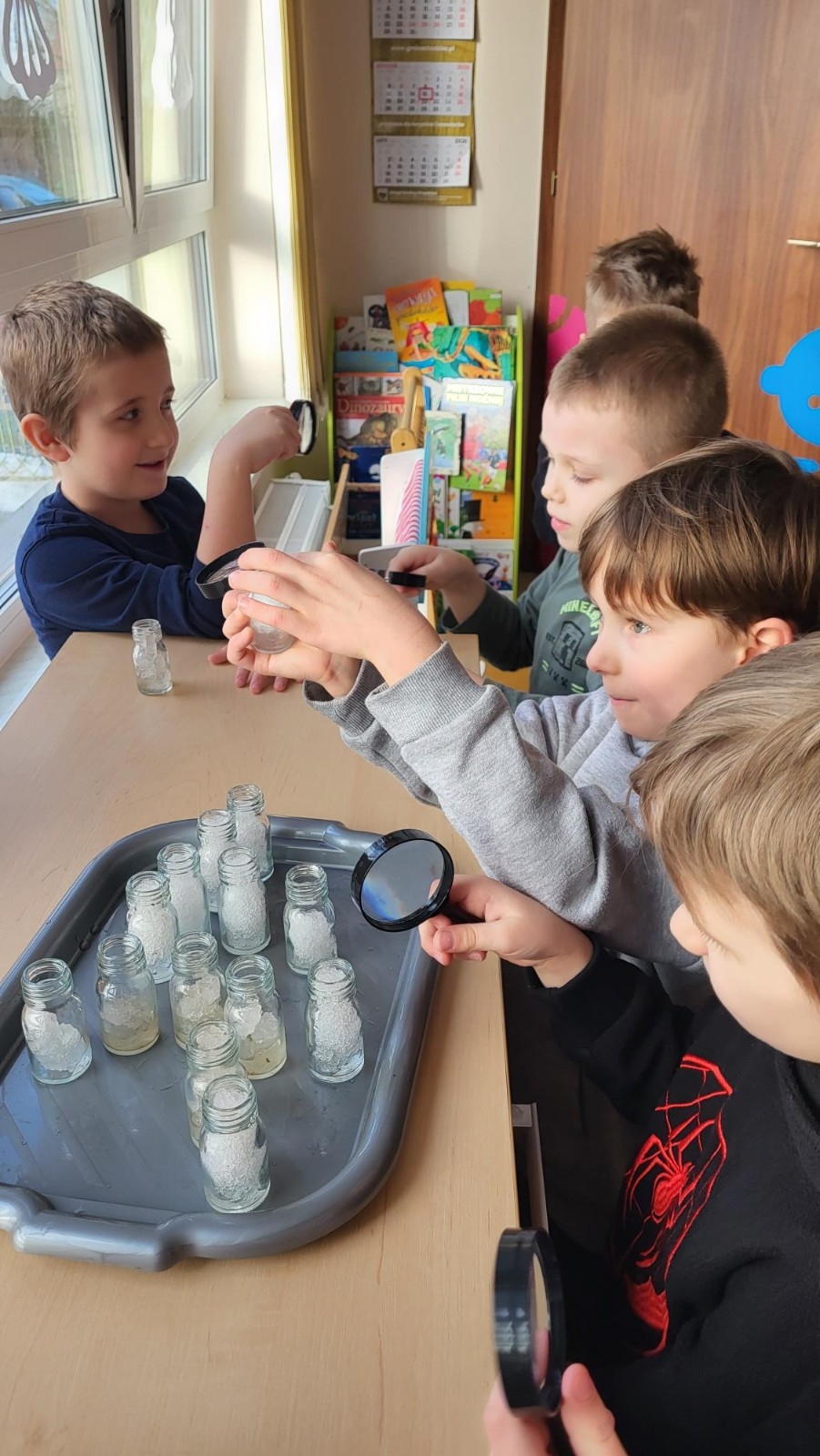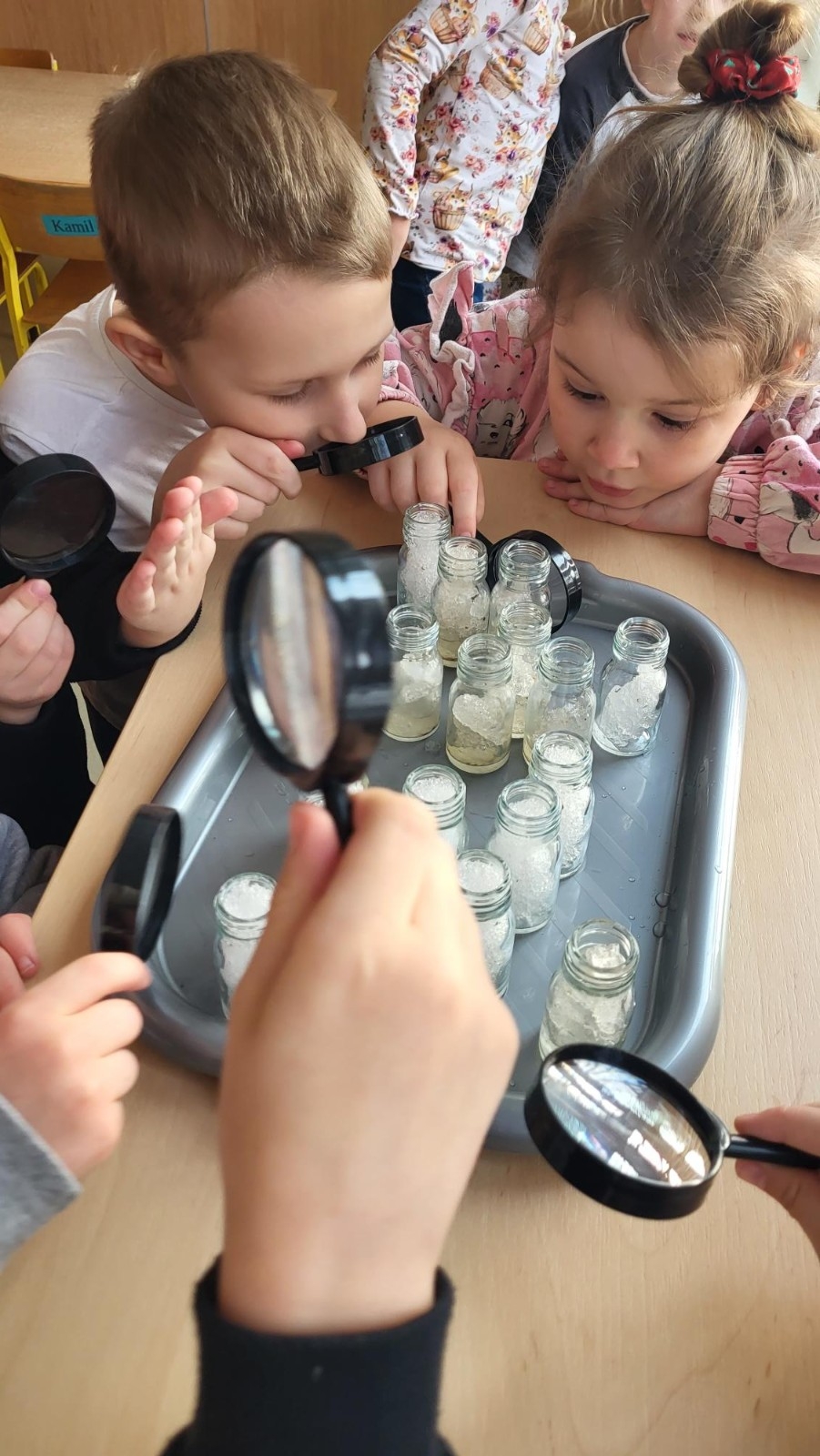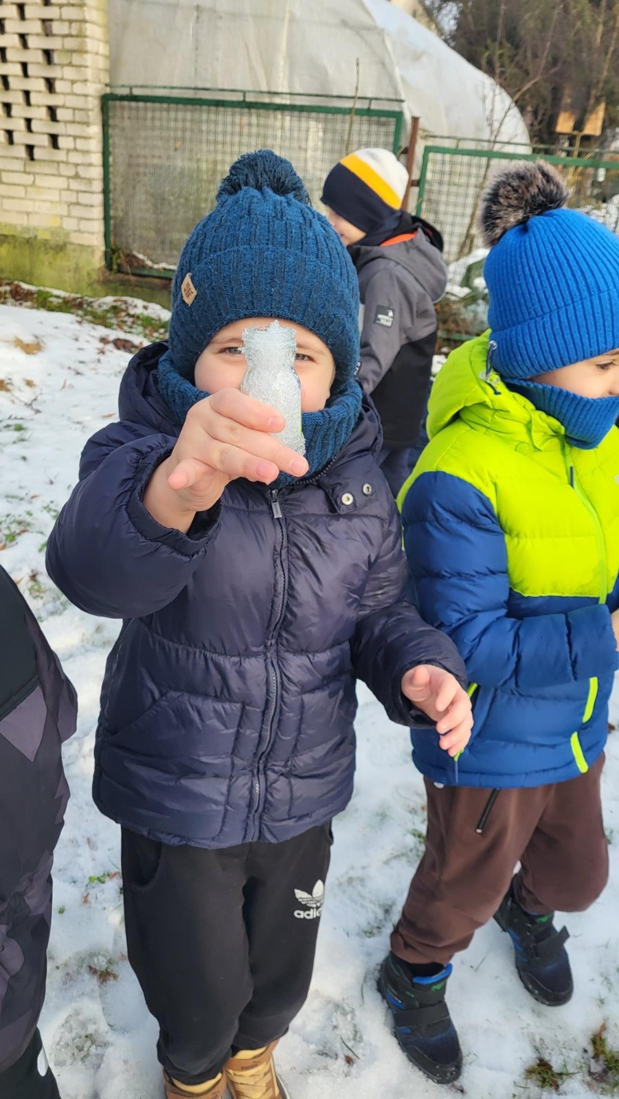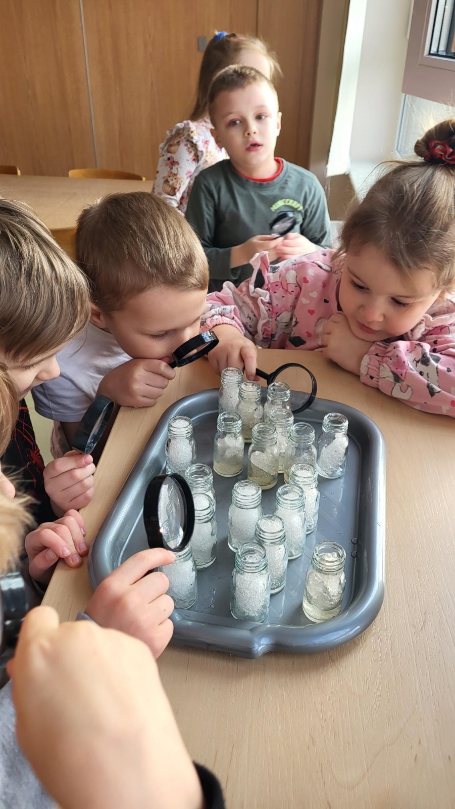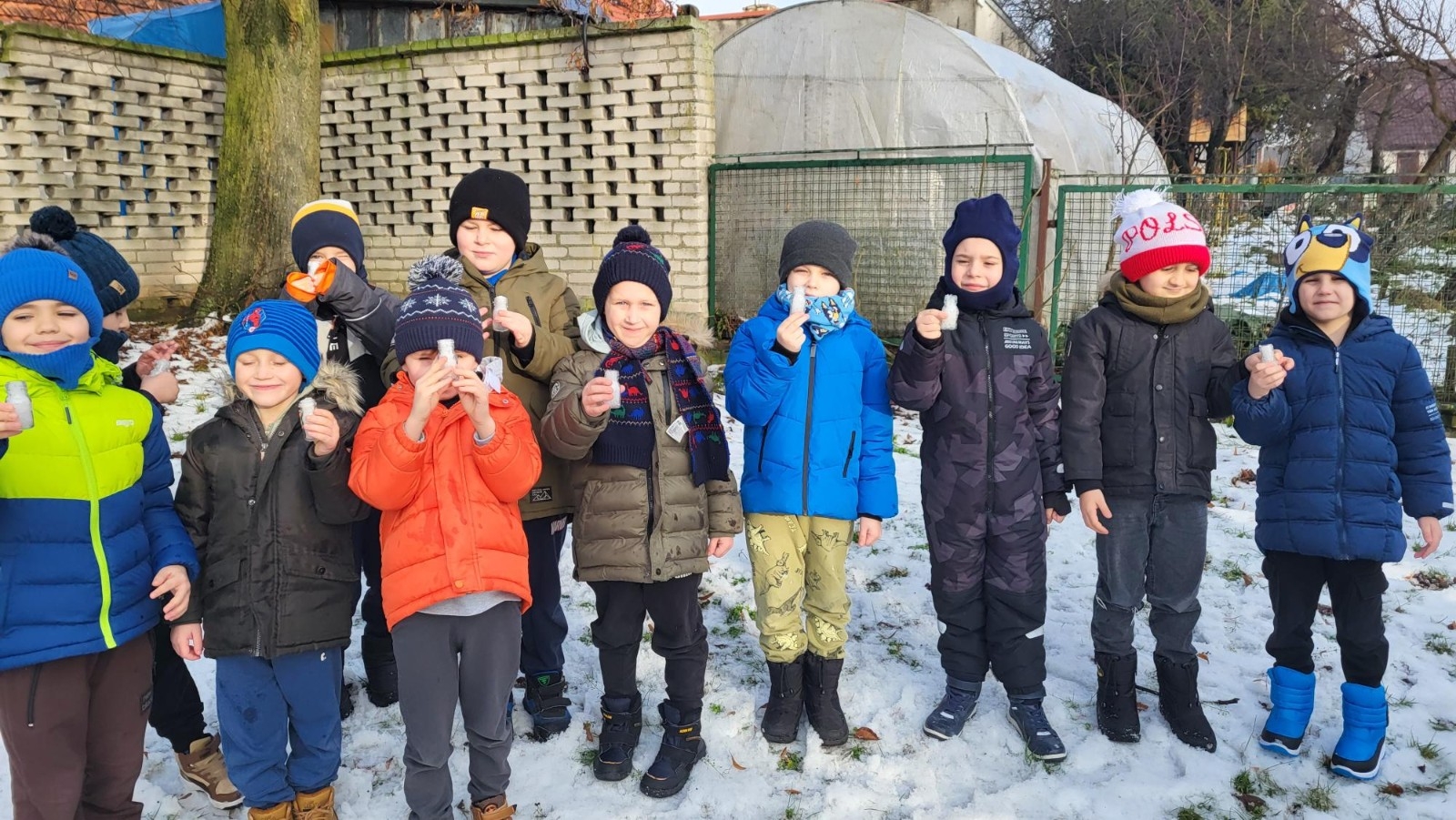 W tym celu udały się do przedszkolnego ogrodu , aby zebrać materiał badawczy czyli lód i śnieg. Pierwszy eksperyment dotyczył obserwacji procesu topnienia śniegu i lodu. Wystarczyło zebrać trochę śniegu i lodu do przezroczystych pojemników i umieścić w sali o temperaturze pokojowe. Dzieci obserwowały, jak szybko śnieg i lód topnieją. Zabawy badawcze to nie tylko sposób na spędzenie czasu na świeżym powietrzu, ale także doskonała okazja do nauki i rozwijania pasji do nauk przyrodniczych. Zachęcają dzieci do zadawania pytań, eksperymentowania oraz odkrywania świata wokół siebie, co jest kluczowe dla ich rozwoju intelektualnego i emocjonalnego