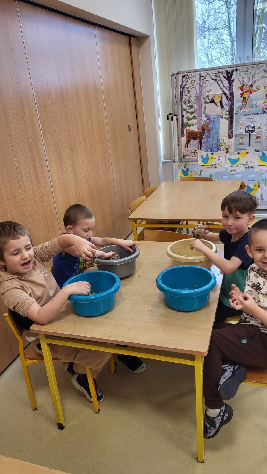 Dowiedziały się jakie ptaki można spotkać w okolicy, jakie są ich potrzeby oraz jak prawidłowo je dokarmiać. Miały też okazję wyczyścić karmniki i samodzielnie przygotować pokarm dla ptaków. Dzieci uczą się, że ich działania mogą mieć bezpośredni wpływ na otaczający je świat co jest bardzo mobilizujące do zachowań proekologicznych. Lidia Graczyk