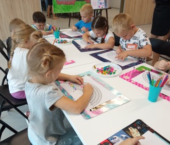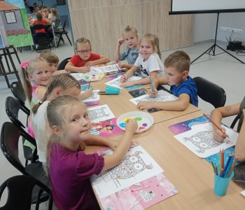 Dzieci z grupy Reksia i Czerwonego Kapturka udały się z wizytą to Miejsko Gminnej Biblioteki w Margoninie na zajęcia z okazji „Dnia Kropki”. Na zajęciach dzieci poznały genezę tego święta. Uważnie obejrzały bajkę o tym, jak to zwyczajna kropka zmieniła świat małej dziewczynki o imieniu Vashti.