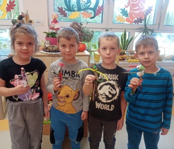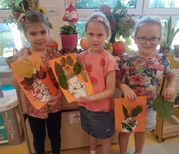 Jesień to magiczna i pełna kolorów pora roku. Natura zmienia się dynamicznie i inspiruje przedszkolaków do tworzenia barwnych i ciekawych prac plastycznych. Praca z materiałem przyrodniczym to dla dzieci przede wszystkim bogactwo kolorów i faktur pobudzające zmysły dotyku, wzroku i zapachu. Przedszkolaki z grupy Czerwonego Kapturka korzystając z jesiennych darów natury i swojej kreatywności wykonały takie prace.
