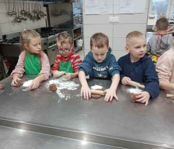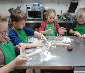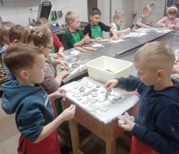 Święta tuż tuż, więc w grupie Czerwonego Kapturka nadszedł czas na pieczenie i dekorowanie świątecznych pierniczków. Najpierw dzieci poznały składniki i sposób wykonania ciasta, a następnie po dokładnym umyciu rąk ochoczo zabrały się do pracy. Z przygotowanego przez Panią Marynę ciasta, wykrawały foremkami w świątecznych kształtach pyszne ciasteczka.