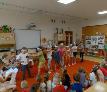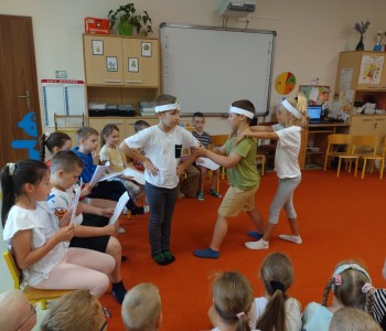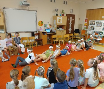 Dzieci z grupy Czerwonego Kapturka odwiedzili uczniowie klasy Ib. Przygotowali oni inscenizację znanej wszystkim utworu Juliana Tuwima pt. "Rzepka". Wykazali się swoimi zdolnościami aktorskimi, poprzez gest i ruch oddały charakter utworu. To był bardzo miły poranek. Dziękujemy za wizytę.