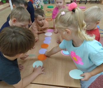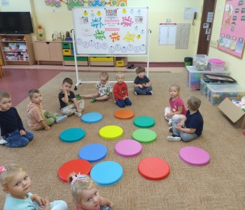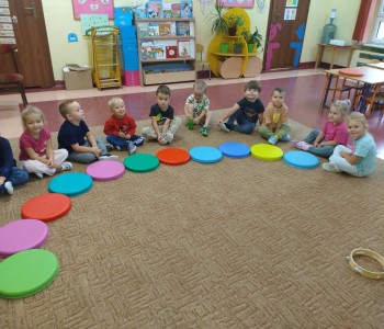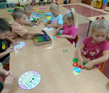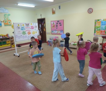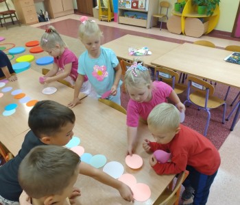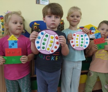 Tego dnia nasze zabawy wypełnione były kolorowymi kropkami. Dzieci dostrzegły kropki tam, gdzie wcześniej nikt na nie zwracał uwagi. Okazało się, że kropki towarzyszą nam w naszym codziennym życiu: są w kropkach biedronki, na twarzy jako piegi, z kropki można utworzyć słońce, bombkę choinkową, kolorową kulę, piłkę itp. Celem zajęć było wzbudzenie u dzieci kreatywności i pomysłowości, którą najlepiej było widać podczas tworzenia prac plastycznych.
