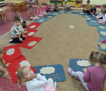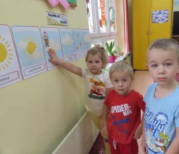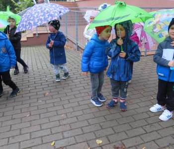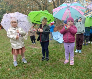 Podczas wędrówki miała okazję nazywać zjawiska atmosferyczne: deszcz, mżawka, wiatr oraz podziwiać piękno jesiennej nasyconej deszczem przyrody. Pogoda jest zawsze, tylko czasami pada deszcz. Po powrocie dzieci zostały zapoznane z kalendarzem pogody. Zachęci to przedszkolaki do systematycznego obserwowania zmian atmosferycznych, określenia stanów pogodowych, rozpoznawania i właściwego interpretowania graficznych symboli pogodowych.