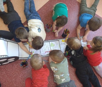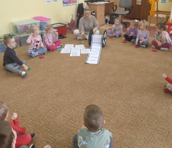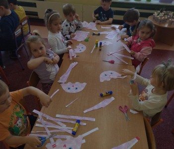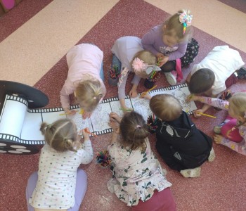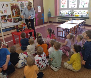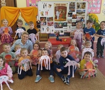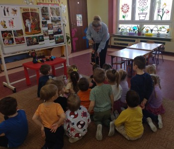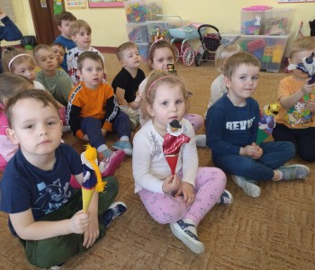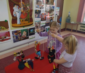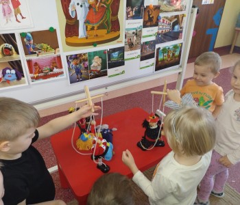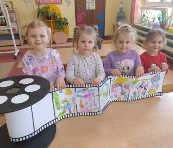 Dzieci poznały różne techniki teatralne takie jak: pantomima, teatr ruchu, teatr lalkowy. Podczas zajęć plastycznych przedszkolaki wykonały własne kukiełki. Potem w trakcie zabawy wykorzystały wykonane przez siebie prace i wcieliły się w role aktorów. Wspólnie stworzyły również wiosenny kadr filmowy. Taka zabawa sprawiła im wiele radości.