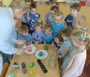 Każde działanie, eksperyment, badanie czy doświadczenie wywołuje u dzieci uśmiech, zdziwienie i radość. To jest podstawa do zadawania pytań, poszukiwania odpowiedzi i wyjaśnienie przebiegu tego działania oraz jego efektu. By lepiej zrozumieć i poznać wodę dzieci z grupy Krasnala Hałabały poznały właściwości wody poprzez obserwacje i proste doświadczenia wyciągały wnioski.