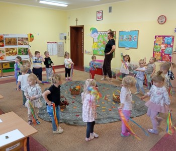 Jesień da się lubić! Dzieci z grupy Krasnala Hałabały powitały Panią Jesień. Dzieci powitały nową porę roku z uśmiechami na twarzach. Przedszkolaki rozpoznawały dary jesieni a następnie wspólnie utworzyliśmy kącik przyrody. Małgorzata Byczek.