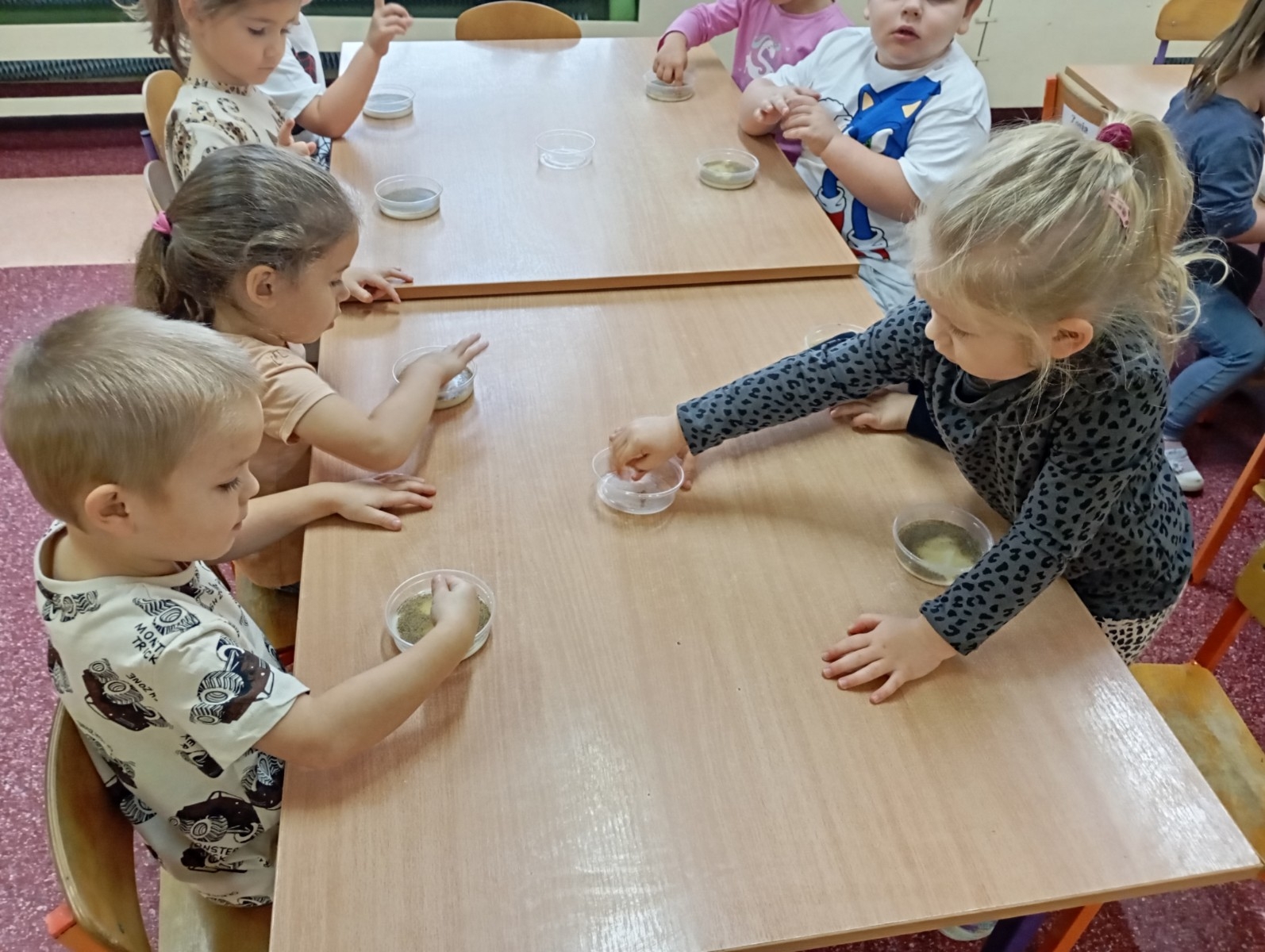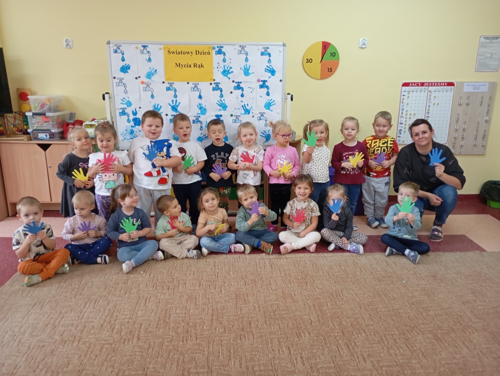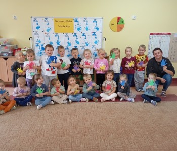 15 października w naszym przedszkolu obchodziliśmy Światowy Dzień Mycia Rąk. Celem tego dnia było przypomnienie jak ważne jest regularne oraz prawidłowe mycie rąk dla zachowania zdrowia i higieny. Dzieci z grupy Krasnala Hałabały omówiły etapy mycia rąk oraz wykonywały eksperyment pt. „Dlaczego warto myć ręce?”, po którym doszły do wniosku, że brud boi się mydła.