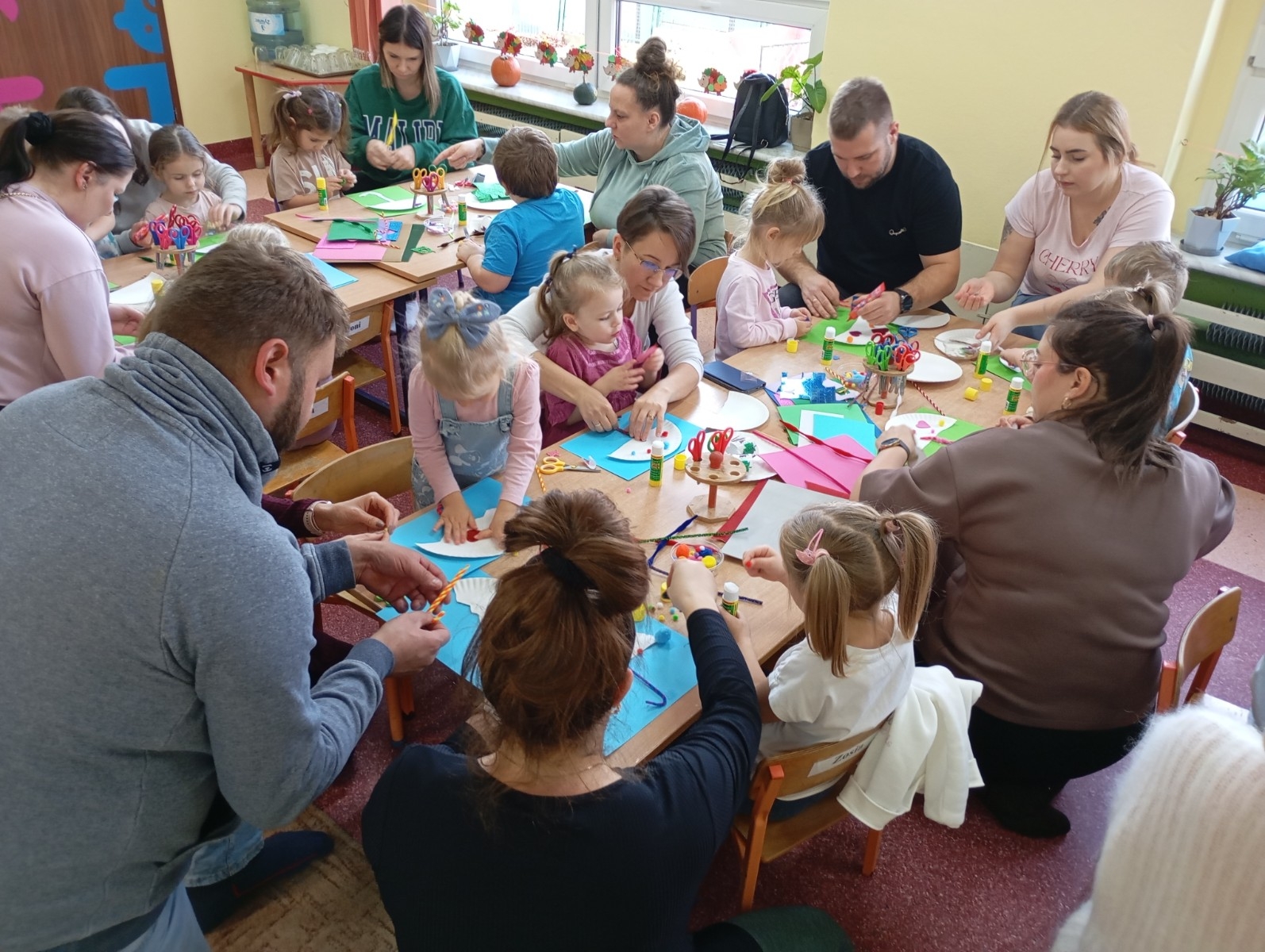 Na koniec dzieci wspólnie z rodzicami wykonały pracę plastyczna. Praca przebiegała w radosnej atmosferze i przyniosła wiele satysfakcji. Serdecznie dziękujemy rodzicom za tak liczne przybycie na zajęcia otwarte i aktywne w nich uczestnictwo. Małgorzata Byczek.