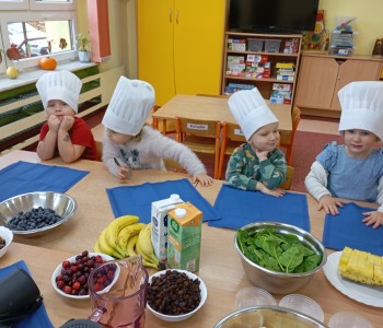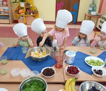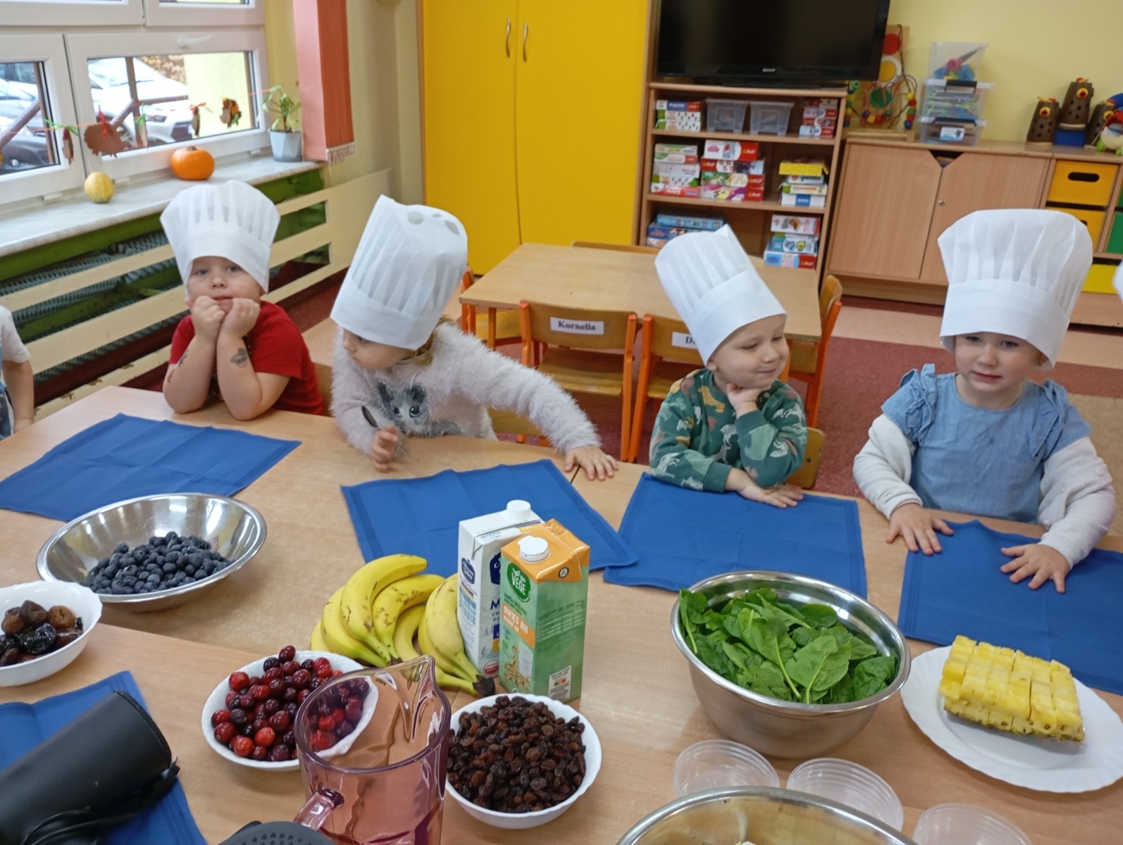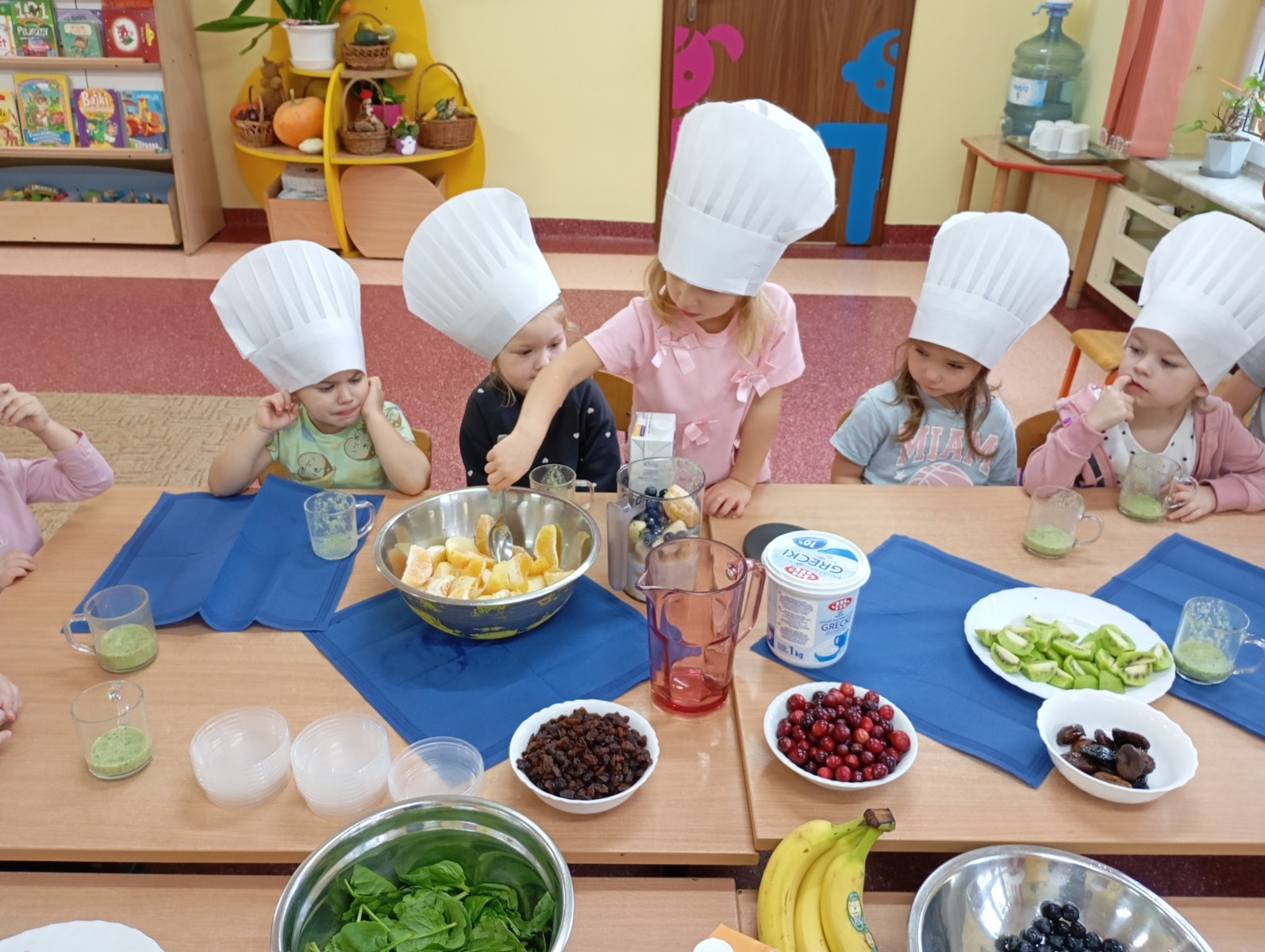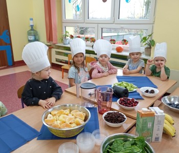W ramach akcji „Śniadanie daje moc” dzieci z grupy Krasnala Hałabały przygotowały zdrowy koktajl jako alternatywę dla słodyczy. Dzieci poznały również zasady zdrowego odżywiania oraz dowiedziały się, jak wygląda piramida zdrowia, które produkty są zdrowe, a których należy unikać.