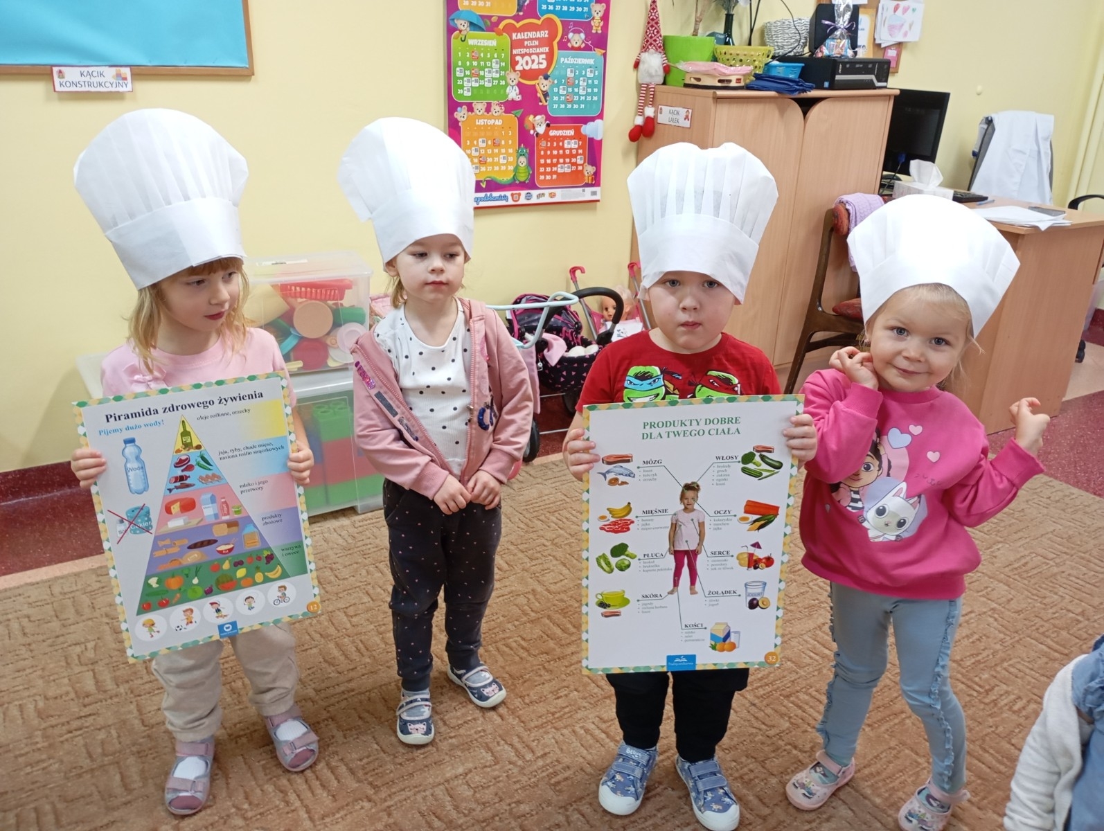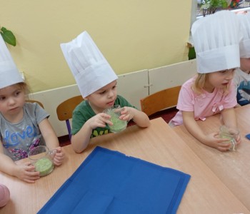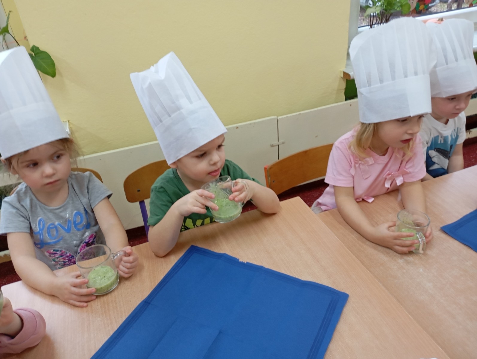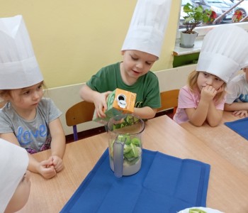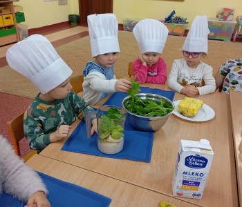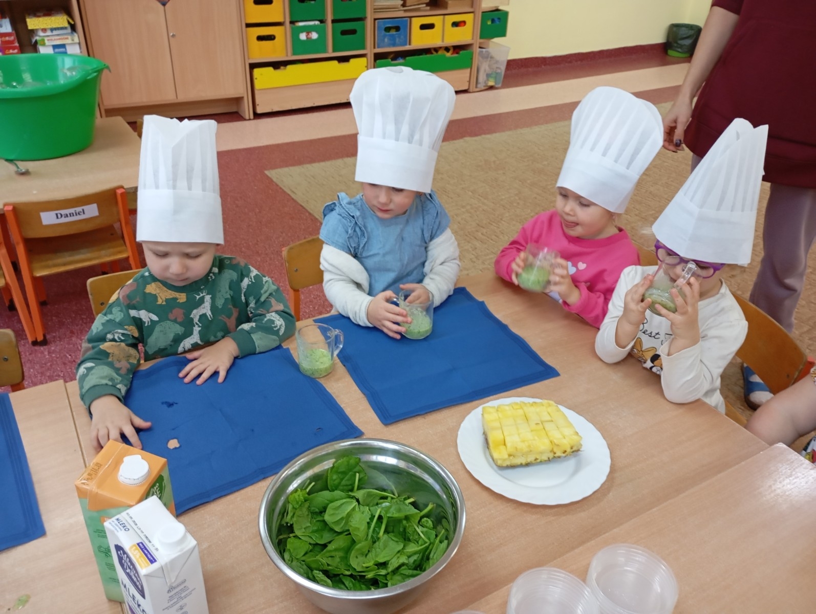 W ramach akcji „Śniadanie daje moc” dzieci z grupy Krasnala Hałabały przygotowały zdrowy koktajl jako alternatywę dla słodyczy. Dzieci poznały również zasady zdrowego odżywiania oraz dowiedziały się, jak wygląda piramida zdrowia, które produkty są zdrowe, a których należy unikać.