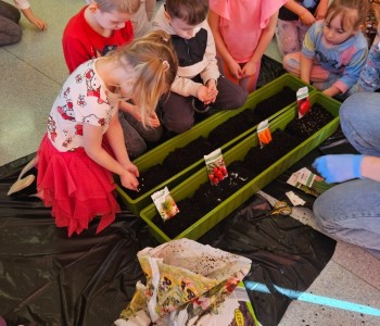 Dzieci z grupy Kubusia Puchatka z zapałem zabrały się za zakładanie wiosennego ogródka. Przedszkolaki, uzbrojone w nasiona, ziemię i rękawiczki, siały warzywa. W ogródku znalazły się: rzodkiewka, marchewka, buraki, ogórki, kapusta oraz fasola. Dzieci poznały etapy wzrostu roślin, dowiedziały się, czego potrzebują do życia oraz jak o nie dbać. To była świetna lekcja przyrody w praktyce! Praca w ogrodzie sprawiła dzieciom wiele radości i satysfakcji. Teraz z niecierpliwością będą obserwować, jak z małych nasionek wyrastają zdrowe warzywa. To wspaniały sposób na naukę cierpliwości, odpowiedzialności oraz szacunku do natury.