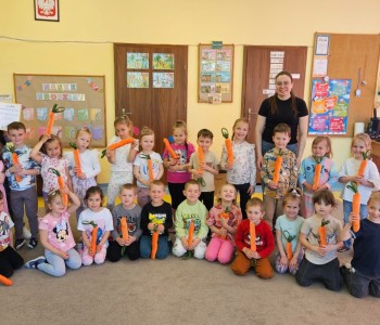 Podczas spotkania dzieci mogły zobaczyć, jak wygląda skracanie spodni – Pani Mariola wykonała to na przykładzie spodni Pani Patrycji. Przedszkolaki z zaciekawieniem obserwowały pracę maszyny do szycia, poznając przy tym jej najważniejsze części oraz sposób działania. Duże wrażenie zrobił także pokaz doszywania gumki do materiału. Na zakończenie tej inspirującej wizyty każde dziecko otrzymało wyjątkową niespodziankę – marchewkę uszytą własnoręcznie przez Panią Mariolę. To spotkanie nie tylko przybliżyło dzieciom zawód krawcowej, ale też pokazało, jak pożyteczne i twórcze może być szycie. Dziękujemy Pani Marioli za piękną lekcję i poświęcony czas!