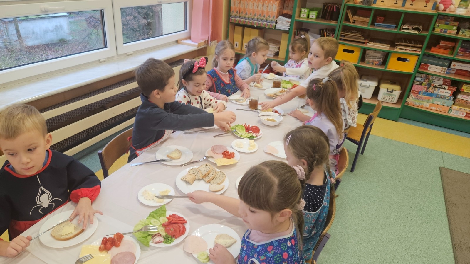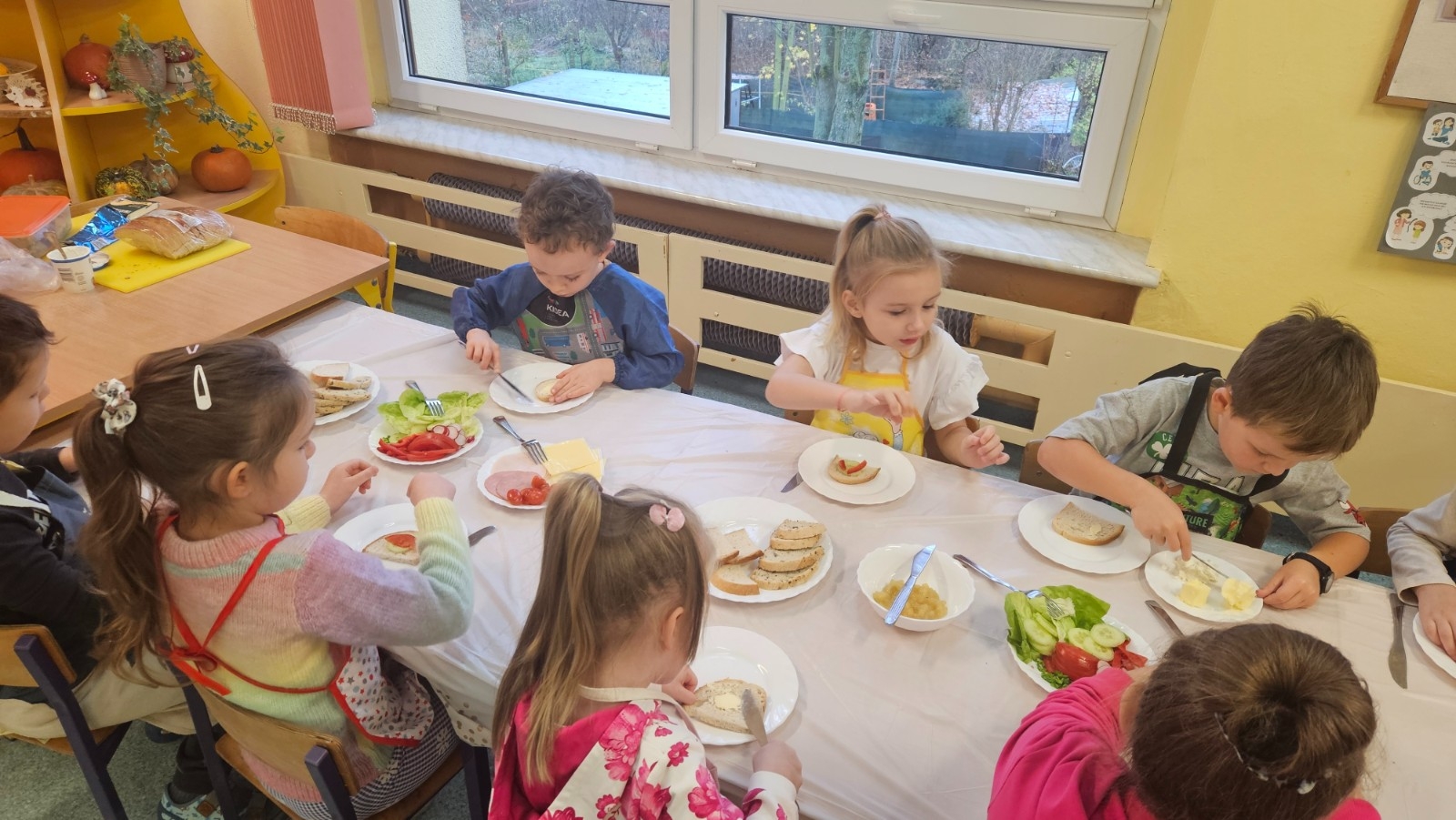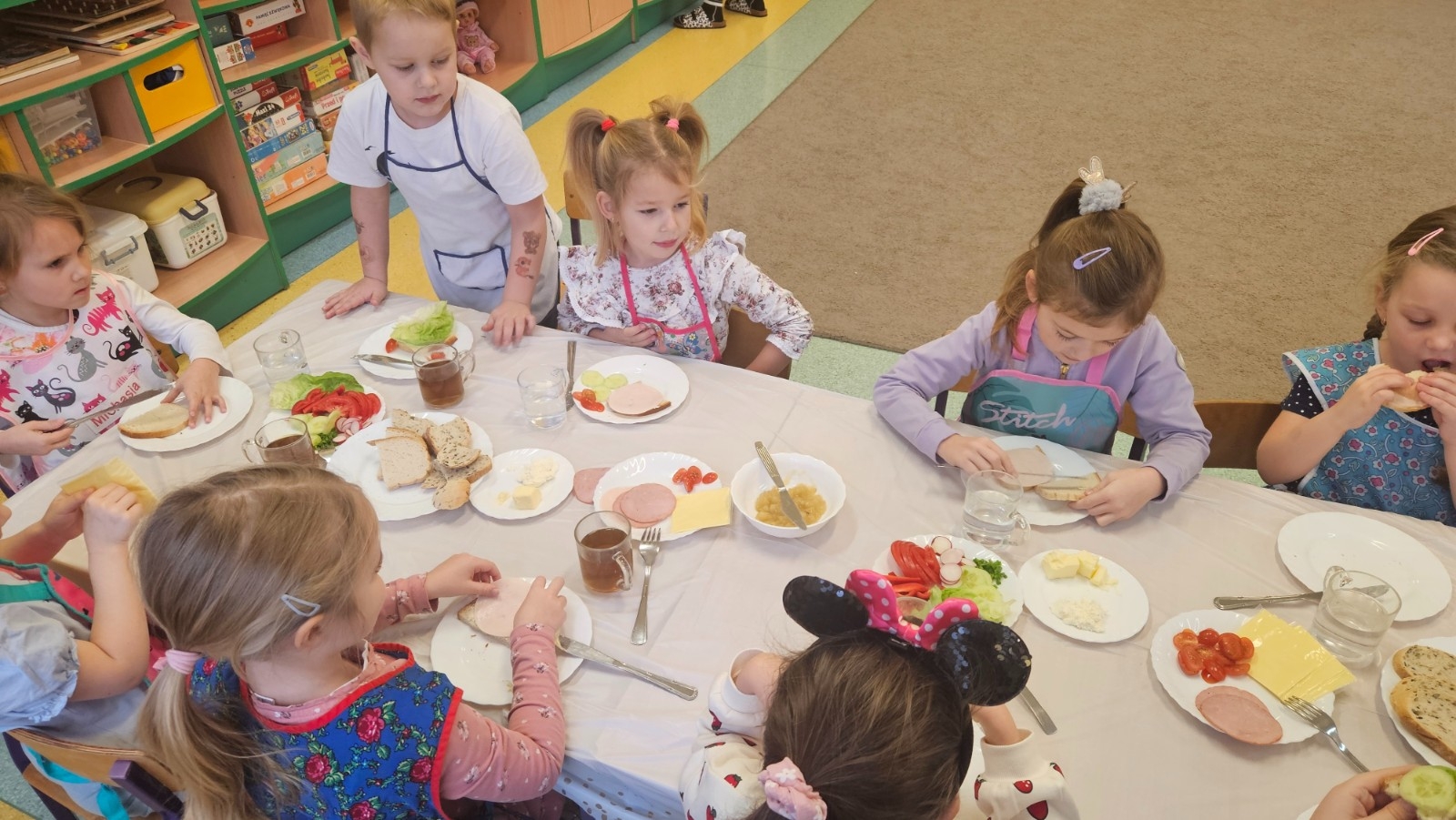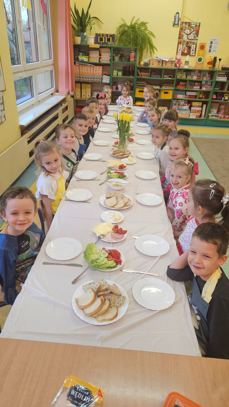 Przedszkolaki z grupy Kubusia Puchatka wzięły udział w akcji „Śniadanie daje moc”. Podczas zajęć dzieci dowiedziały się, jakie witaminy kryją się w owocach i warzywach oraz dlaczego warto jeść zdrowe posiłki. Dzieci samodzielnie przygotowały kolorowe, pełne warzyw kanapki. Mali kucharze stanęli na wysokości zadania, tworząc pyszne i zdrowe kompozycje. To była smaczna lekcja zdrowego odżywiania!