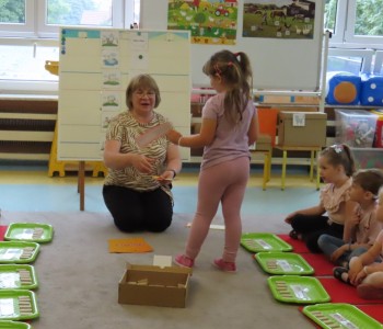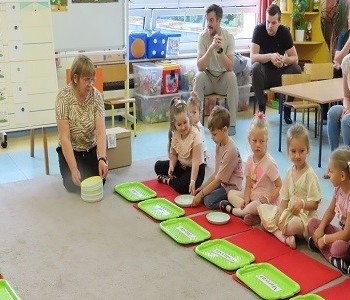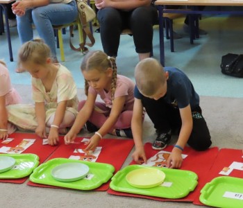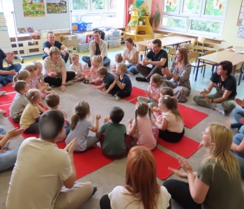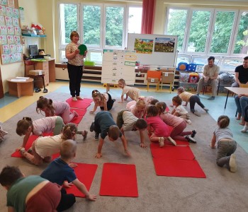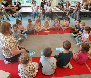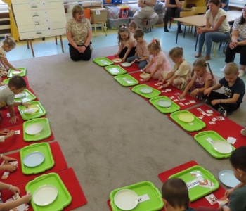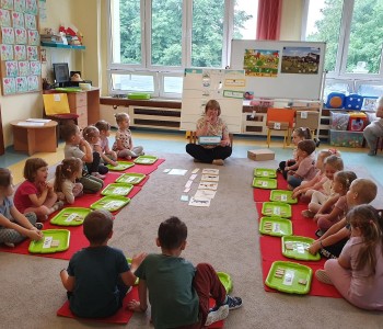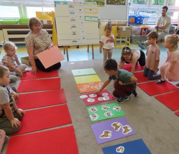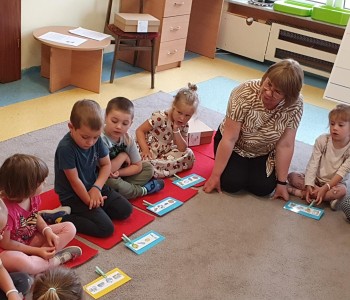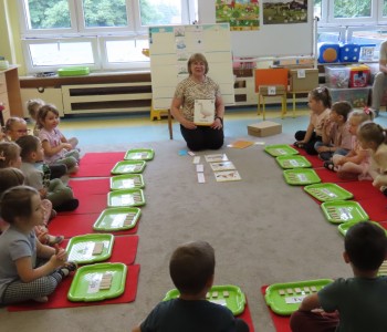 7 czerwca w grupie „Kubusia Puchatka” odbyło się zajęcie otwarte dla rodziców. Dzieci wykonywały przygotowane zadania, aby na prośbę kota Filika „pomóc zwierzętom odzyskać głos”. Układały obrazki z 8 elementów rozwijając spostrzegawczość wzrokową. Rozwiązywały zagadki, dokonywały analizy wyrazowej zdania i wyodrębniały głoski w nagłosie wyrazów rozwijając mowę i słuch fonematyczny. Odszukiwanie obrazków niepasujących do pozostałych miało na celu ćwiczenie spostrzegawczości wzrokowej i logicznego myślenia.