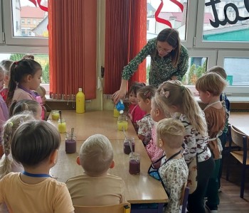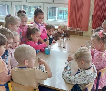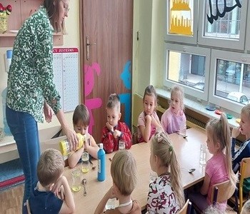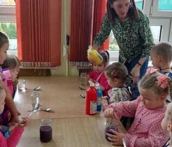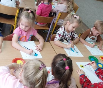 Jak łączyć kolory, żeby powstał inny kolor. Dzieci z grupy Misia Uszatka już to dobrze wiedzą. Podczas zajęć dydaktycznych dzieci wykonały eksperyment polegający na zmieszaniu kolorów podstawowych aby otrzymać kolory pochodne. Przedszkolacy wiedzą jakie barwy należy ze sobą wymieszać aby otrzymać kolory: pomarańczowy, fioletowy, zielony czy brązowy. Dzieci utrwalały wiedze malując pędzlem kontur niedźwiedzia.