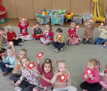 Podczas realizacji tygodnia tematycznego dzieci z grupy Misia Uszatka rozmawiały o swojej ojczyźnie. Przedszkolacy choć niewiele mają lat doskonale wiedzą, jak nazywa się ich kraj oraz jakie są jego symbole narodowe. Dzieci w przystępny sposób poszerzały wiedzę o historii Polski, utrwalały znajomość barw narodowych, układały flagę i śpiewały piosenki patriotyczne.