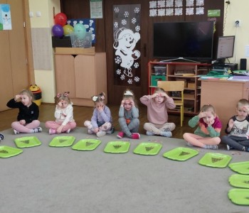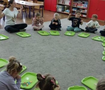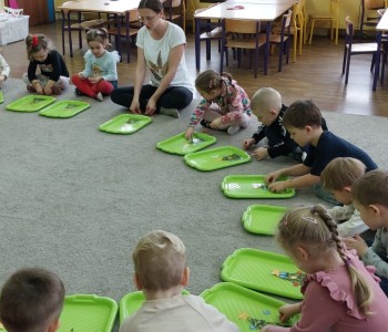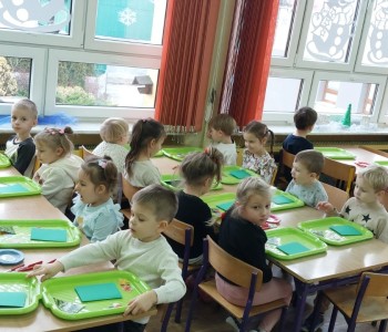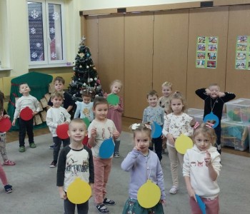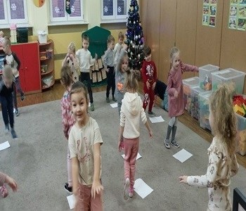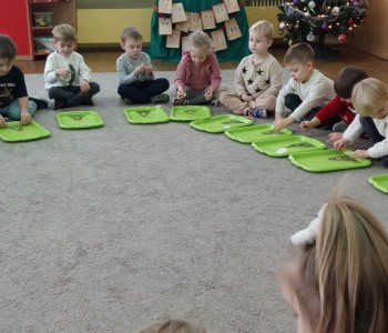 Co dzień rano otwierają zadanie z kalendarza adwentowego i realizują je w trakcie pobytu w przedszkolu. Tego dnia elf przygotował dla dzieci zadanie związane z drzewkiem świątecznym. Podczas zajęć matematycznych dzieci ćwiczyły orientacje w schemacie w własnego ciała i w przestrzeni, rozróżniały prawą i lewa stronę przeliczały ozdoby choinkowe, reagowały na polecenia słowne nauczycielki. Następnie podczas zajęć plastyczno-technicznych wykonały kartkę świąteczną z dostępnych materiałów.