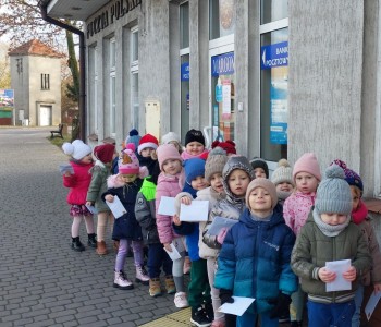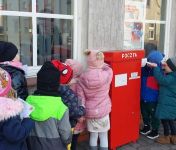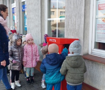 Dzieci dowiedziały się jak zapakować, następnie jak zaadresować list, w którym miejscu przykleić znaczek. Później wybraliśmy się na spacer na pocztę aby nadać listy do najbliższych przedszkolaków. Teraz pozostało jedynie z niecierpliwością wypatrywać listonosza!