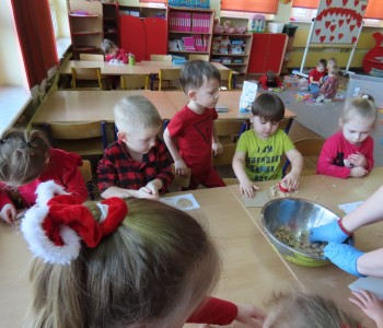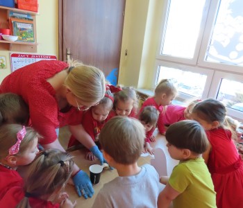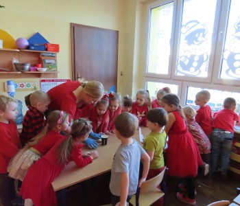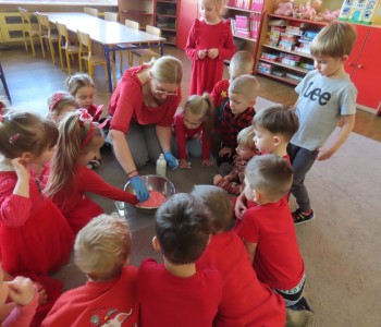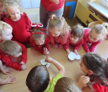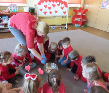 14 lutego dla grupy Misia Uszatka był prawdziwym, czerwonym dniem Miłości i Przyjaźni. W dniu Św. Walentego panował wyjątkowy nastrój. Dzieci poznały tradycje walentynkowe, dowiedziały się jak ważne jest okazywanie uczuć przyjaźni i sympatii w stosunku do innych ludzi. Przedszkolaki miały możliwość brania udziału w różnych eksperymentach. Na koniec w z masy kuskus wykonał piękne serca dla Rodziców.