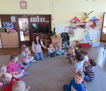 24 marca odbyły się warsztaty logopedyczne dala dzieci . Dzieci aktywnie uczestniczyły w zajęciach: usprawniali usta, język, policzki, podniebienie miękkie. Były zabawy oddechowe, fonacyjne , paluszkowe. Dzieci naśladowały zwierzęta mieszkające na wsi, usprawniały koordynację wzrokowo- słuchowo- ruchową.