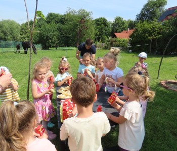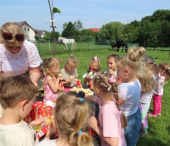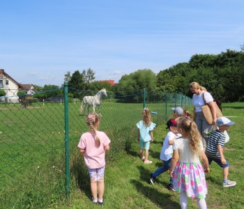18 czerwca nasza grupa wybrały się na wycieczkę do gospodarstwa rolnego Państwa Podolskich. Celem wycieczki było zwiedzanie gospodarstwa rolnego, poznanie pracy rolnika. Dzieci już od samego rana z niecierpliwością czekały na spacer.