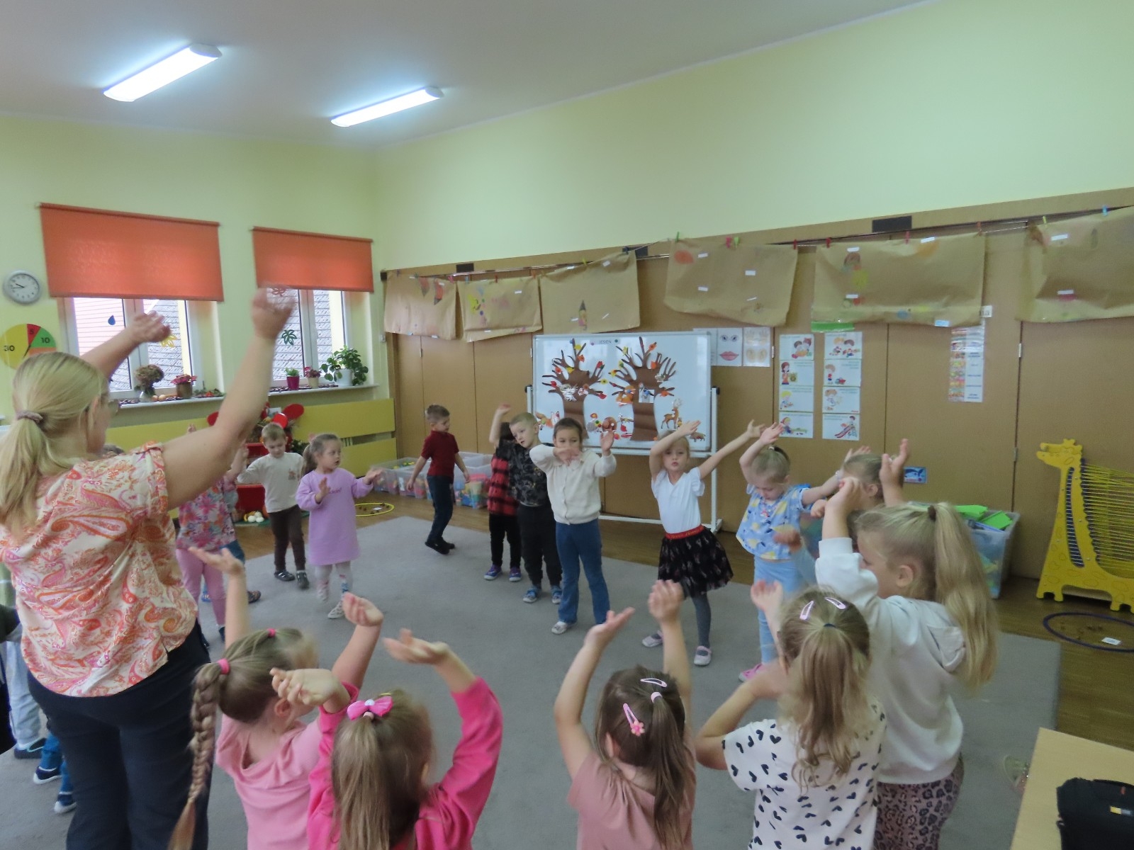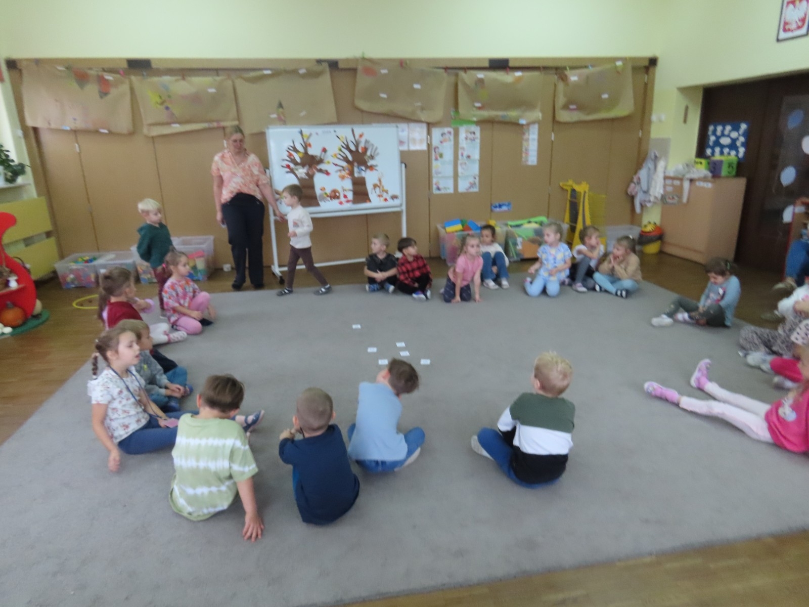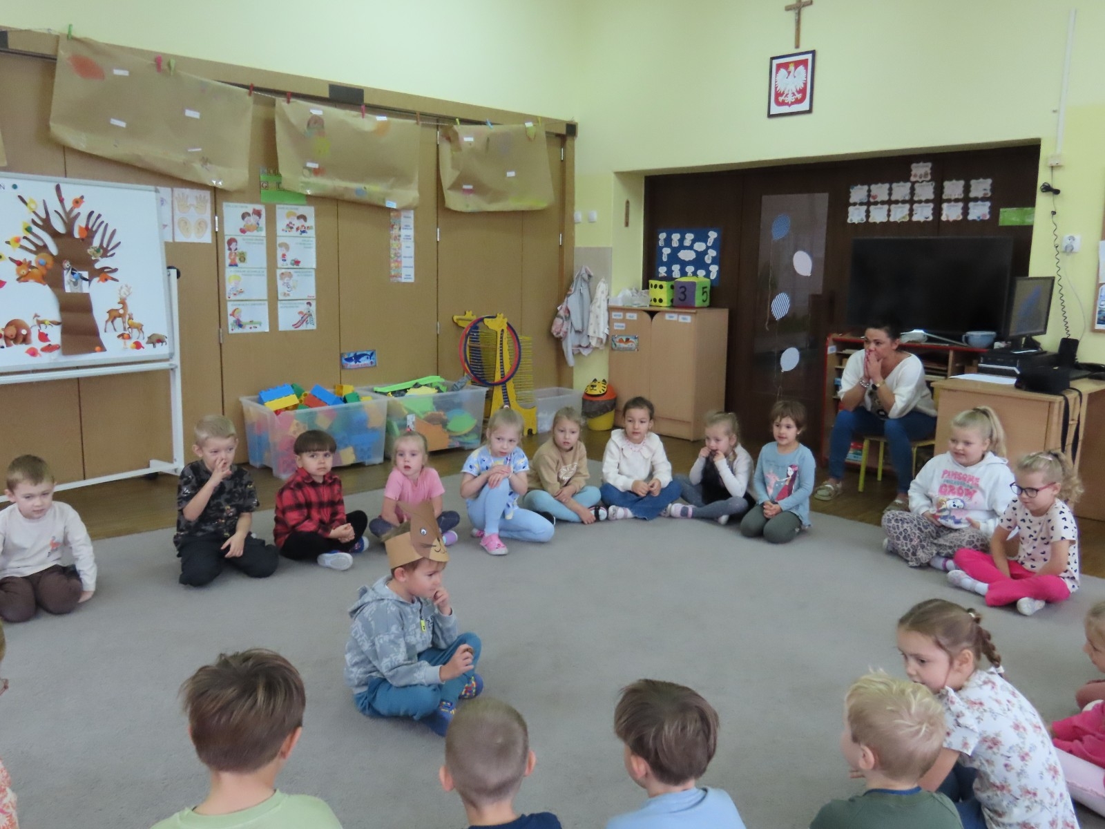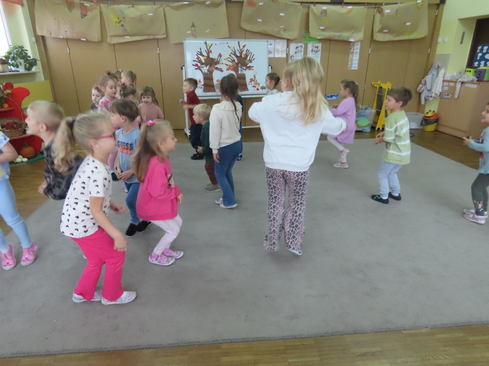 Nadeszła piękna, złota jesień. Z każdym dniem robi się coraz chłodniej, liście opadają, tracąc barwy, przyroda powoli przygotowuje się do zimowego snu. W przedszkolu nadszedł czas na jesienne zabawy, zbieranie liści, szyszek, jarzębiny, kasztanów i żołędzi.