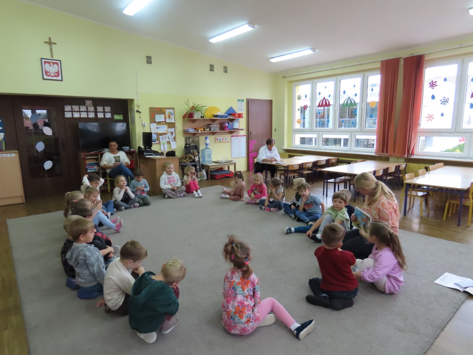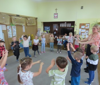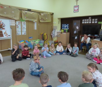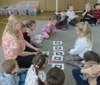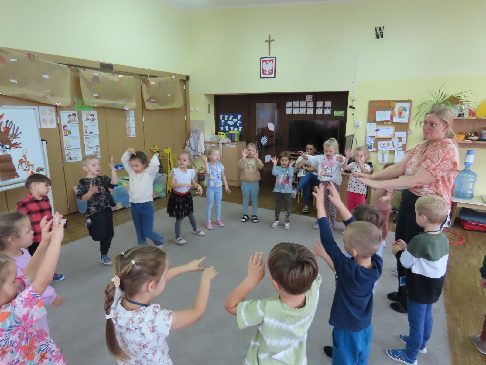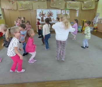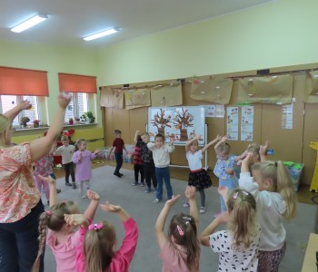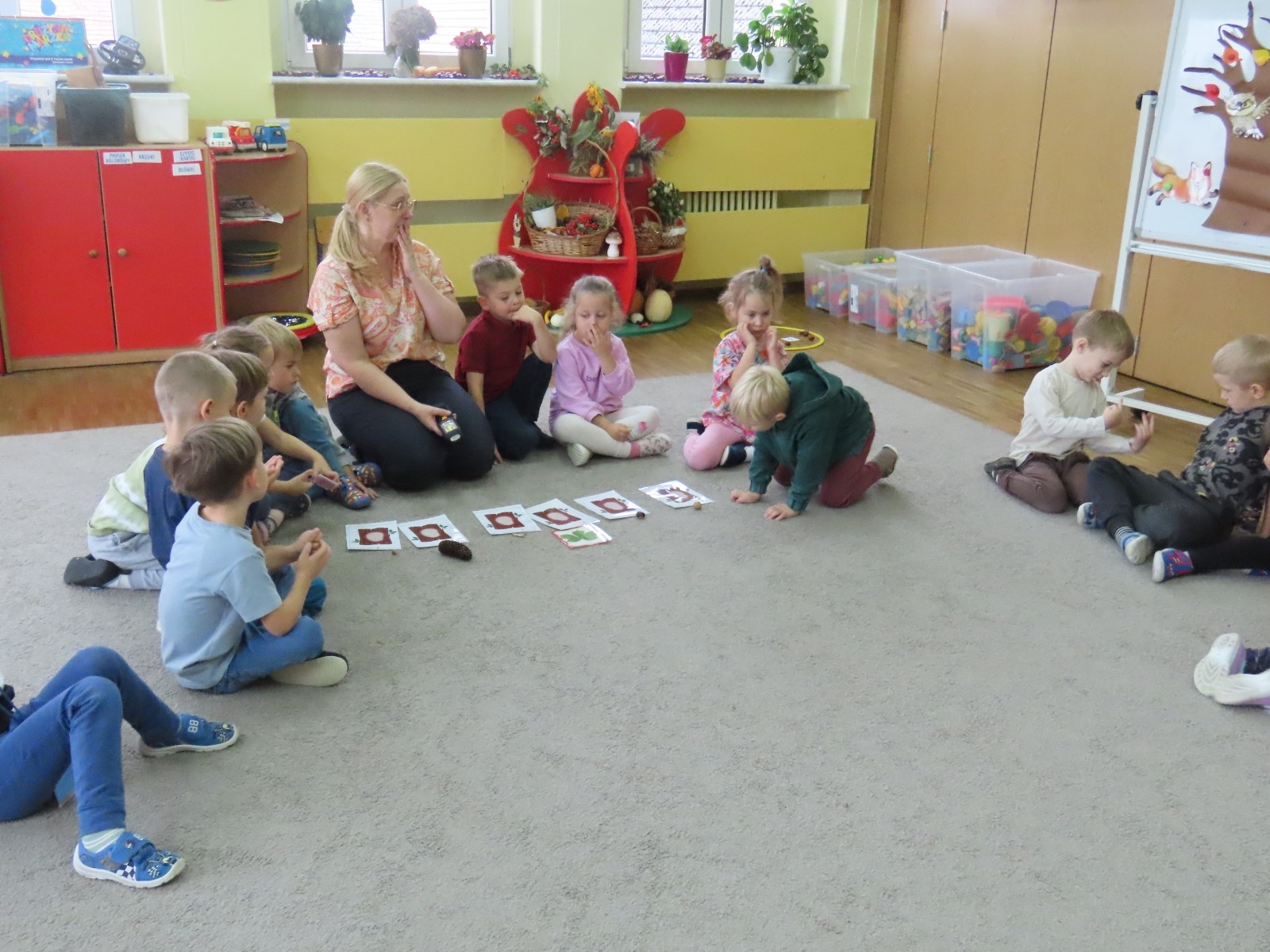 Nadeszła piękna, złota jesień. Z każdym dniem robi się coraz chłodniej, liście opadają, tracąc barwy, przyroda powoli przygotowuje się do zimowego snu. W przedszkolu nadszedł czas na jesienne zabawy, zbieranie liści, szyszek, jarzębiny, kasztanów i żołędzi.