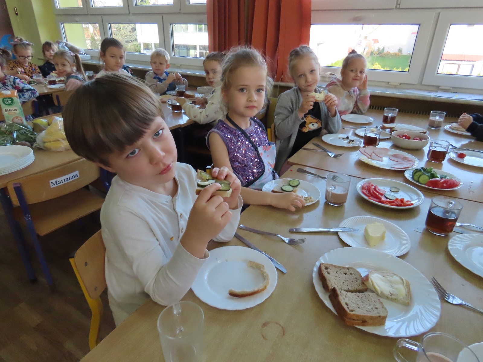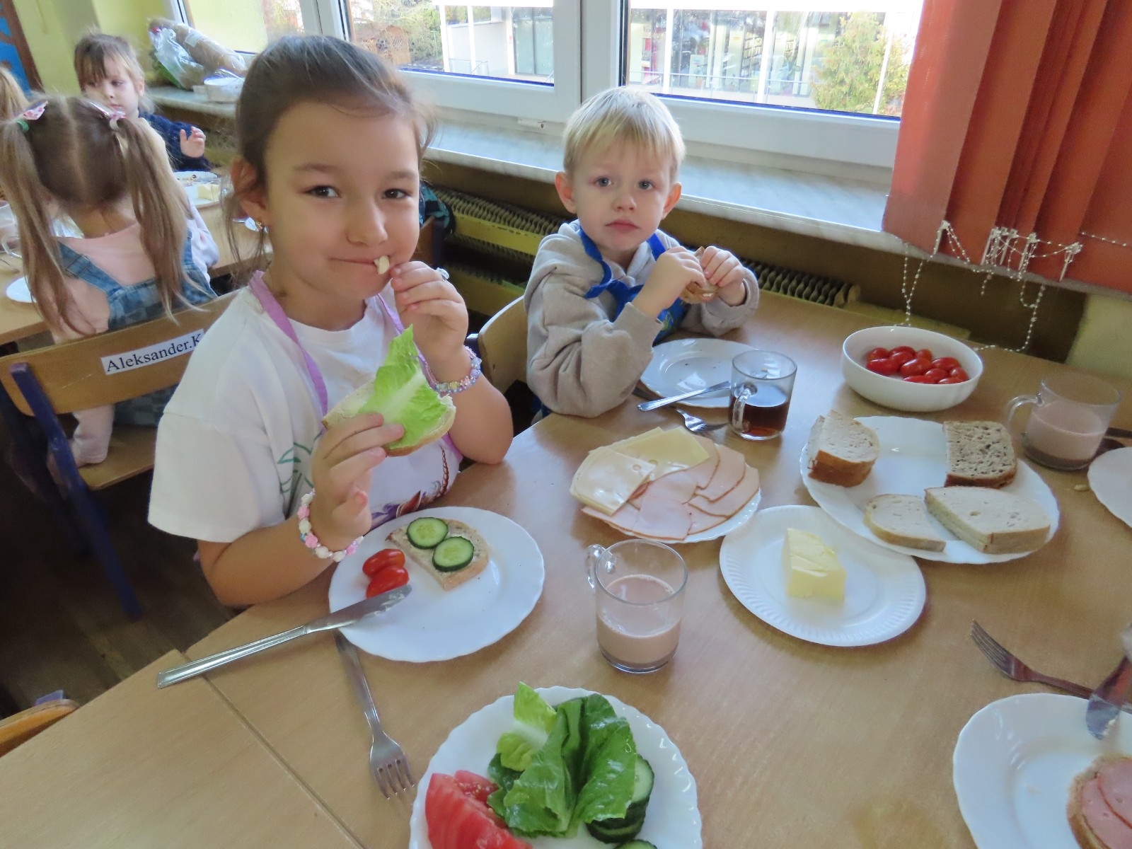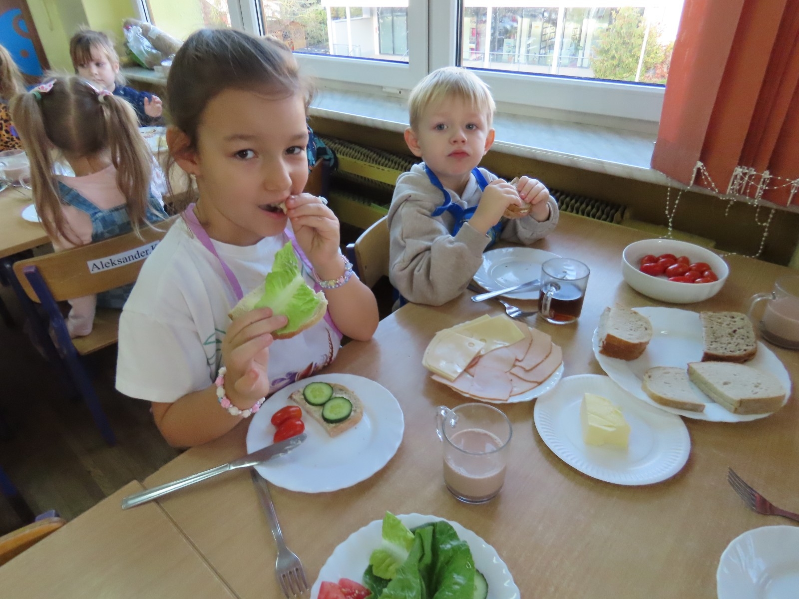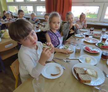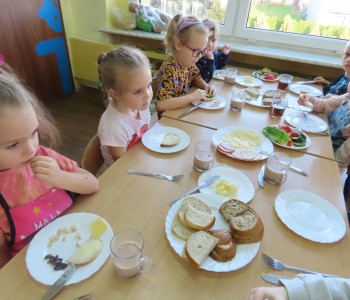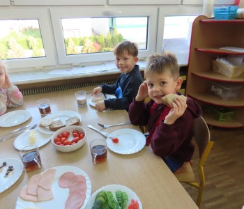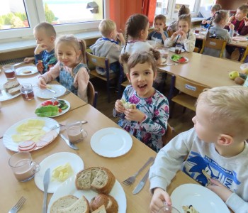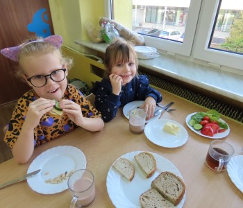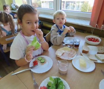 W grupie Misia Uszatka zorganizowaliśmy Dzień Zdrowego Śniadania, podczas którego dzieci miały okazję samodzielnie przygotować swój pierwszy posiłek dnia. Z zdrowych składników przedszkolaki tworzą smaczne i zdrowe kanapki, wybierając spośród świeżych warzyw, nabiału, wędlin.