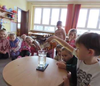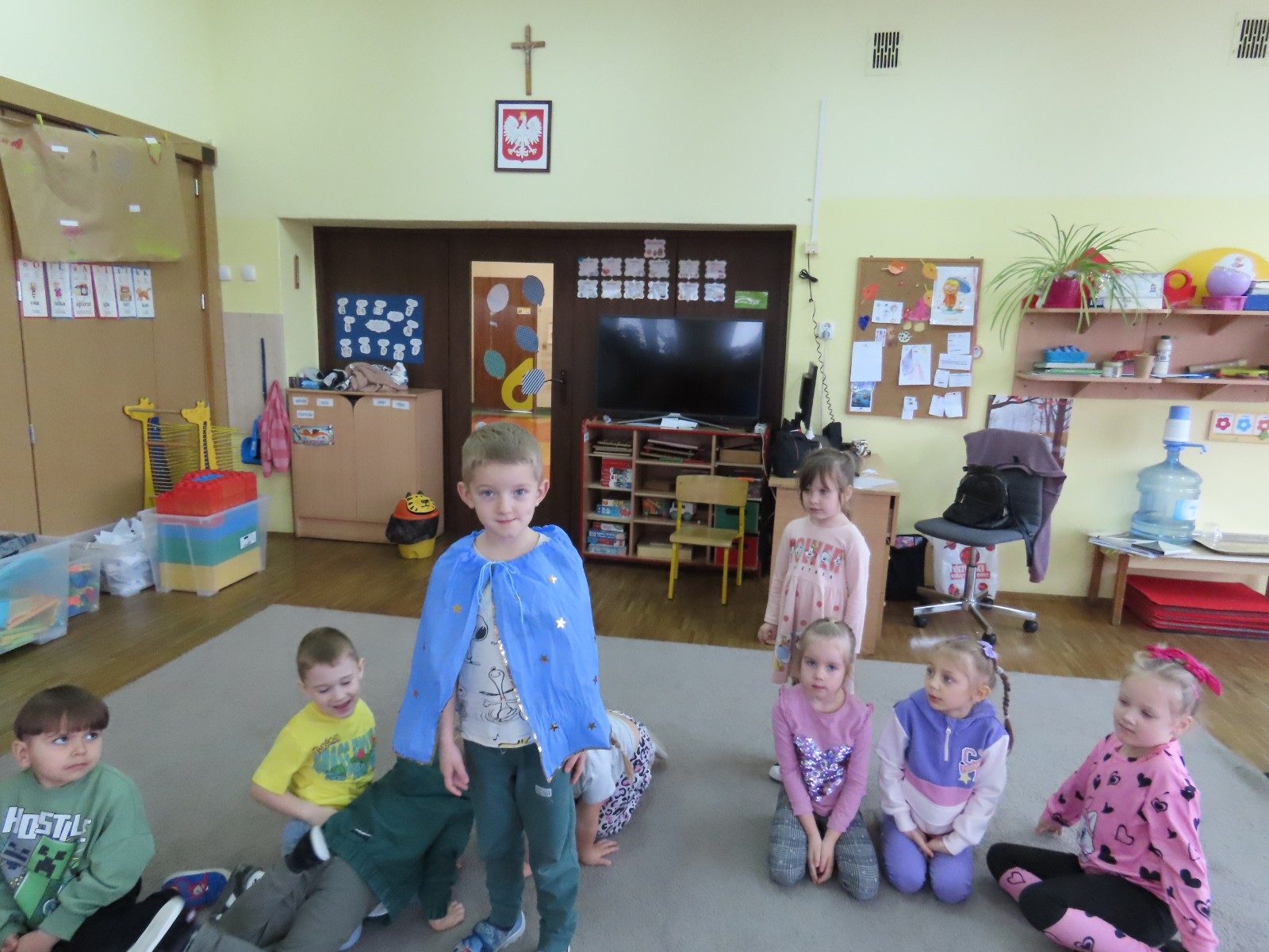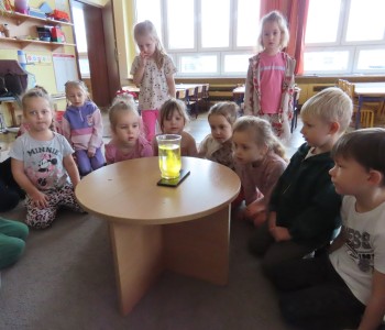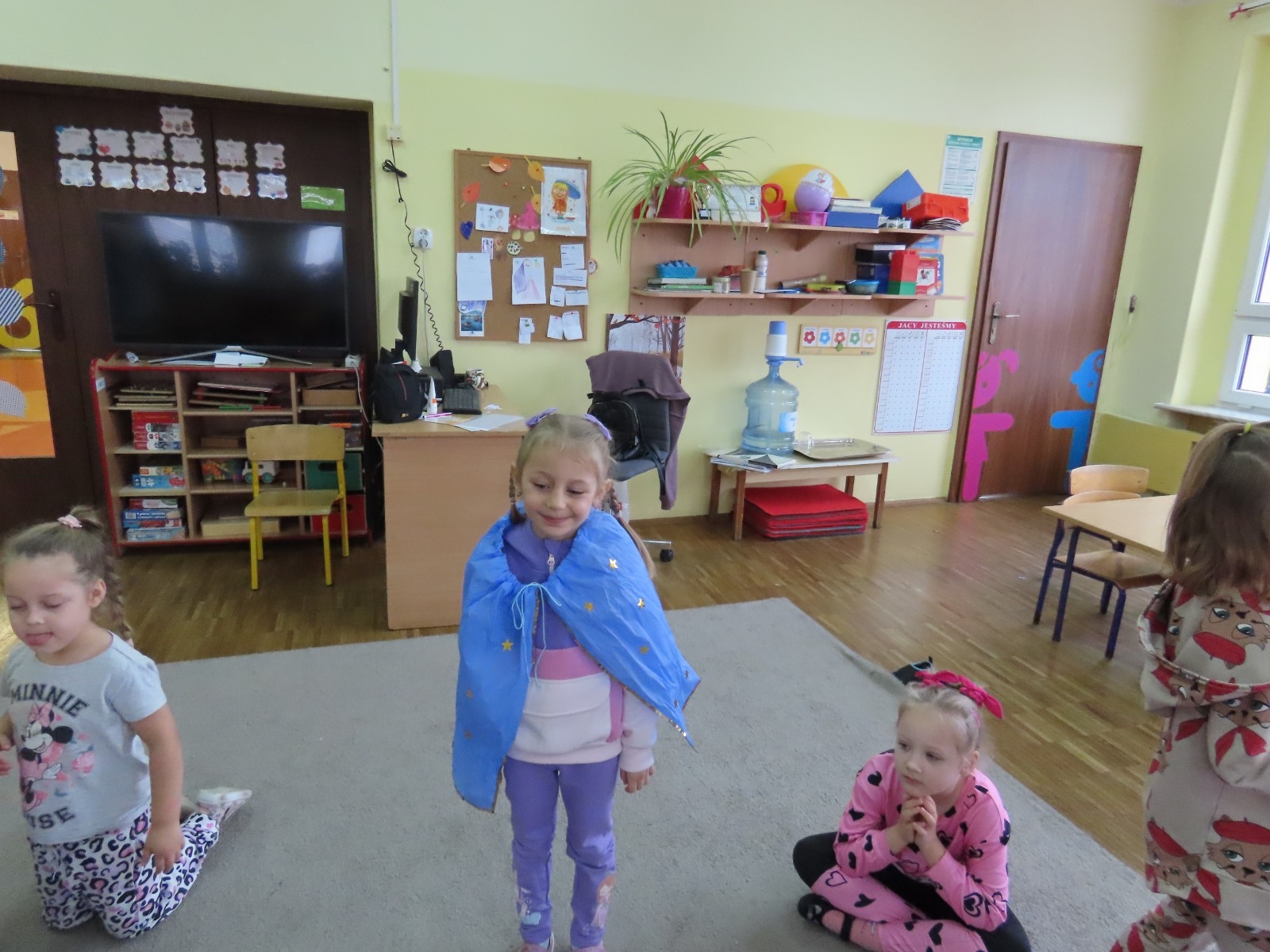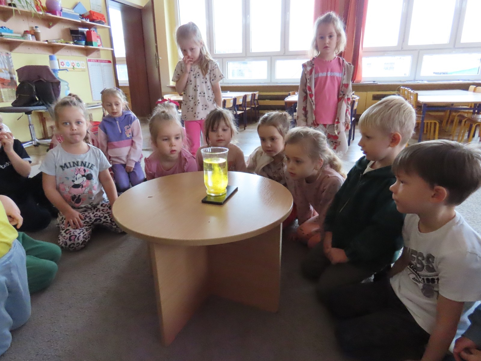 Przedszkolaki dowiedziały się, czym jest zdziwienie – że może być ono pozytywne, kiedy spotyka nas coś miłego i niespodziewanego, ale również niepokojące, gdy zaskoczenie nie jest przyjemne. Podczas zajęć przedszkolaki uczestniczyły w ciekawych zabawach i doświadczeniach. Szczególnie dużo emocji wzbudził „Eksperyment z kurkumą”, który w praktyczny sposób pokazał, jak można się zdziwić! Rozmawialiśmy także o tym, jak można poradzić sobie ze zdziwieniem, które nie jest przyjemne – dzieci poznały sposoby na wyciszenie organizmu, takie jak: przykrycie się peleryną , skorzystanie z „kącika emocji ” czy zastosowanie kocyka obciążeniowego (w przypadku zaleceń terapeutycznych).