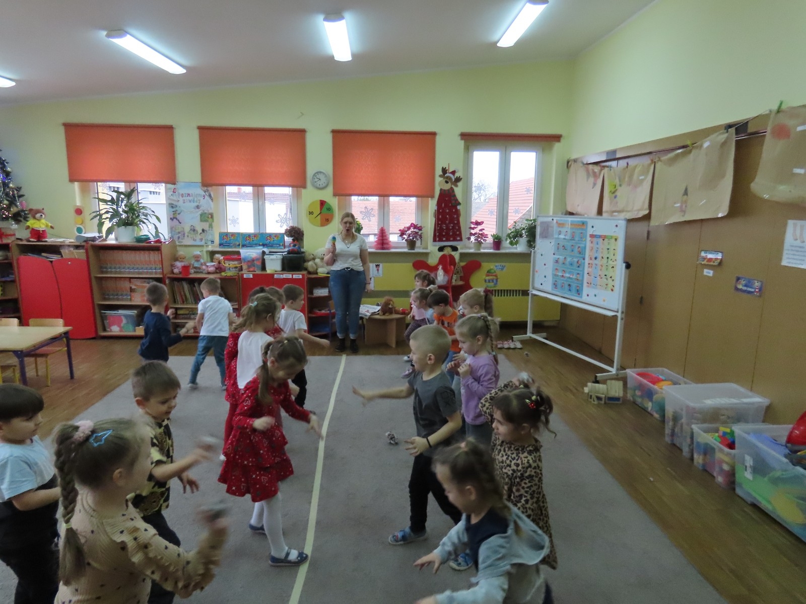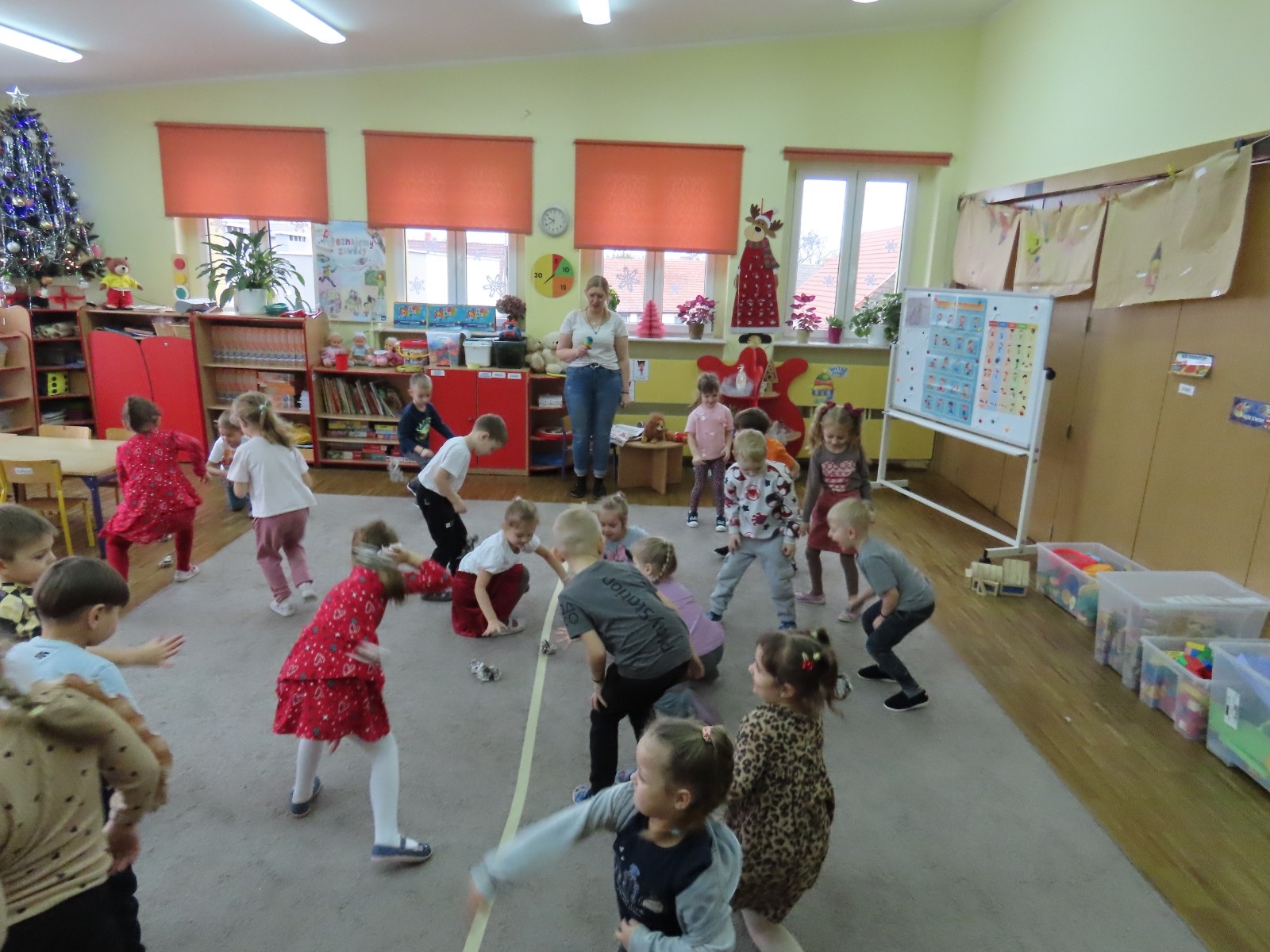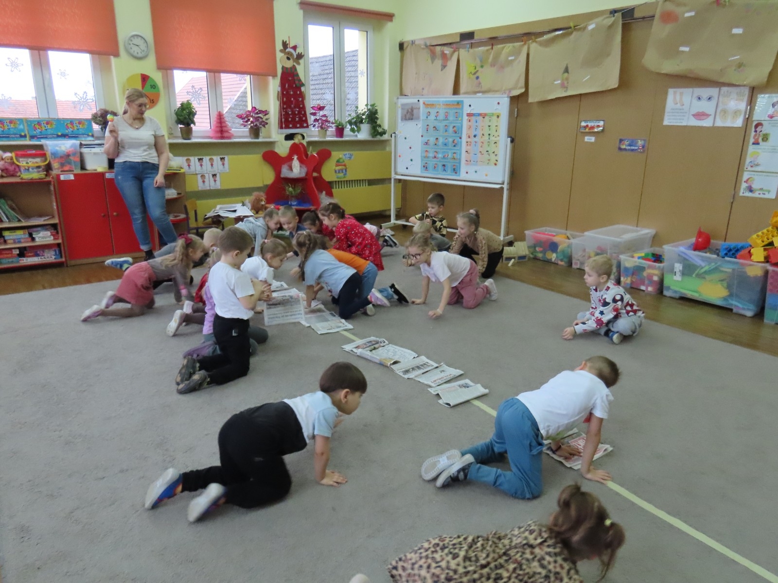 W dniu 12 grudnia 2025 dzieci z grup Misia Uszatka uczestniczyły w „Wesołej zabawie z gazetami”. O tym, że ruch to zdrowie wiedzą wszyscy, nawet najmłodsze dzieci. Podczas zajęć przedszkolaki kształciły koordynację wzrokowo - ruchową, doskonaliły skoczność, zwinność i równowagę, uczyły się reagować na polecenia i umowne sygnały.