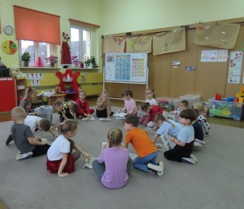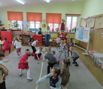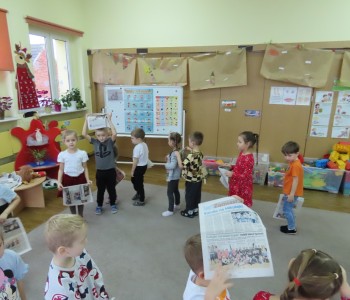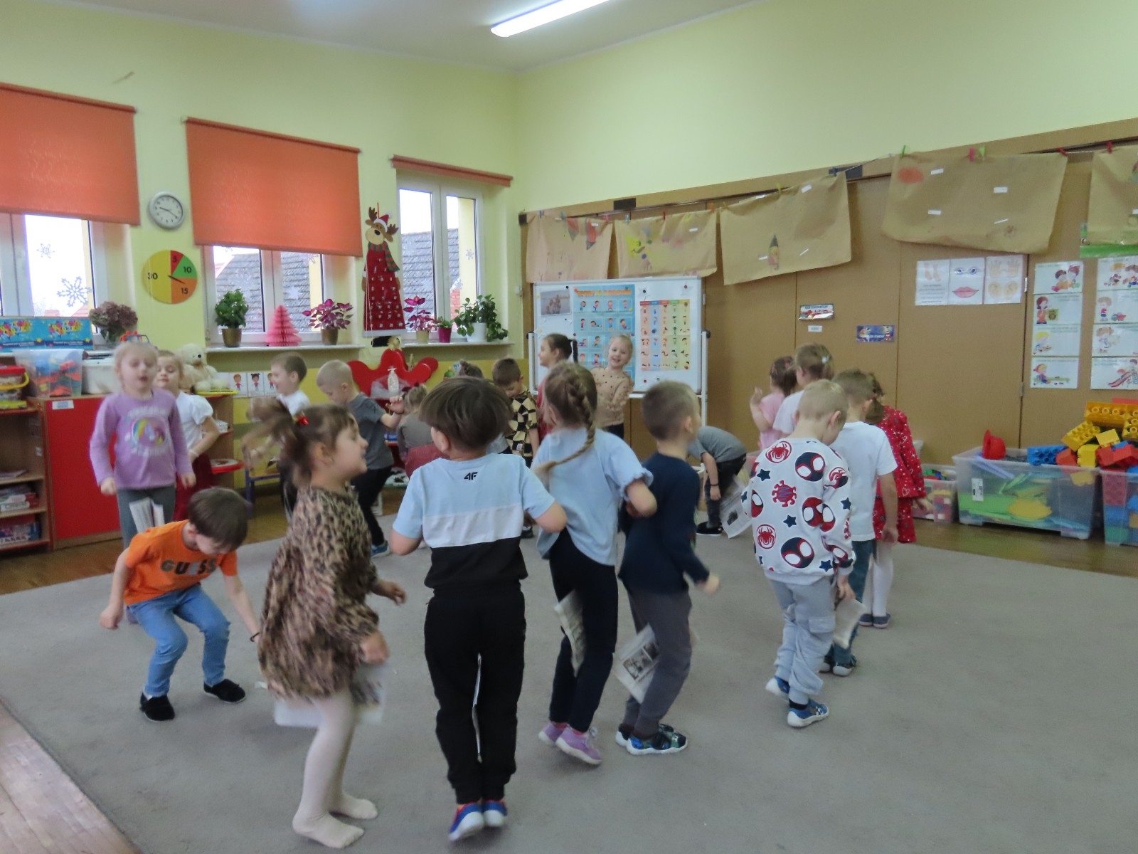 W rytmie tanecznej muzyki aktywizowały poszczególne partie ciała oraz doskonaliły umiejętność sprawnego poruszania się w przestrzeni. Zabawy z gazetami były także okazją nawiązania współpracy.