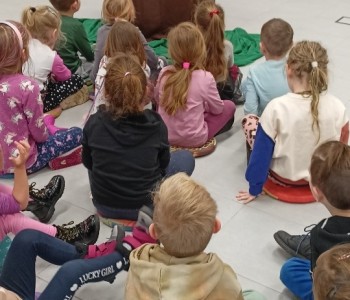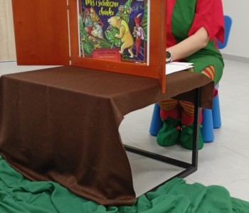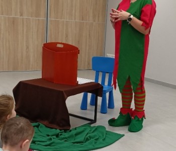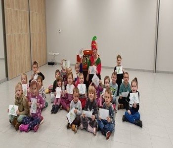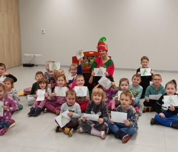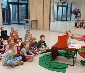 W ramach współpracy z Biblioteką Publiczną w Margoninie dzieci z grupy Misia Uszatka miały okazję wziąć udział w teatrzyku Kamishibai. Wysłuchały opowiadania „ Miś i świąteczna choinka” , dowiedziały się skąd się wzięła choinka oraz znajdujące się na niej ozdoby.