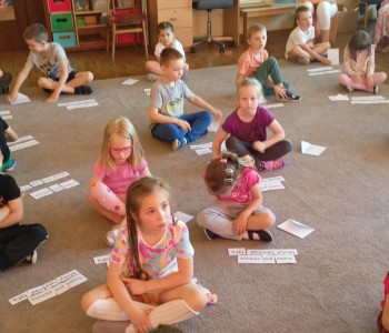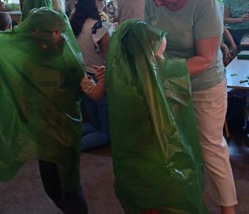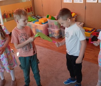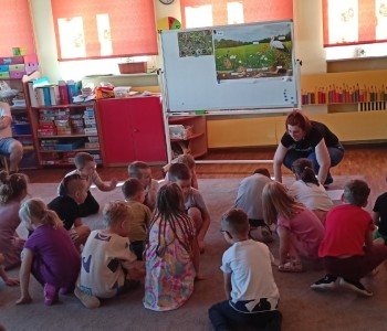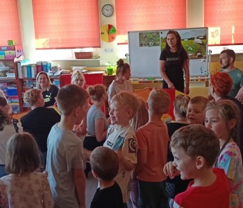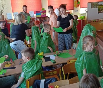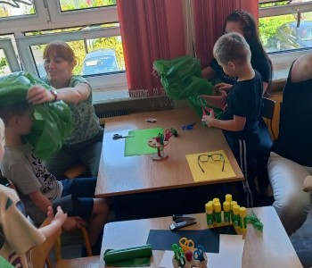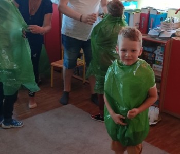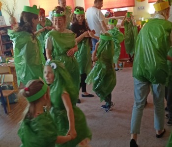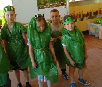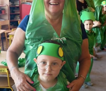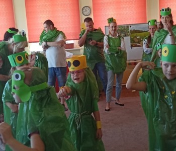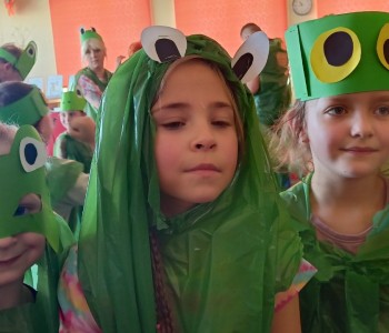 w ciągu roku szkolnego, rozwijały aktywność twórczą poprzez ekspresję słowną i ruchową, utrwalały wiadomości o środowisku przyrodniczym jakim jest łąka i jej mieszkańcy. Wraz z rodzicami dzieci przygotowały „żabie” stroje a zwieńczeniem zajęć była wspólnie wykonana inscenizacja do piosenki „Żaby”.