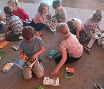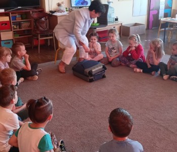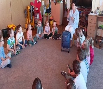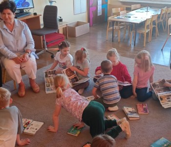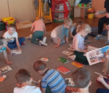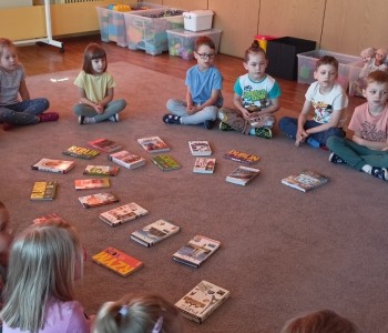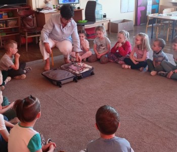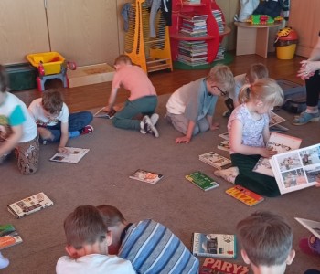 O podróżach tych bliskich i tych dalekich opowiedział w grupie Misia Uszatka zaproszony gość, pani Małgorzata Janicka – Tomczak. Dzieci z wielką uwagą wysłuchały opowiadania o przygodach Jadzi Pętelki w podróży. Przedszkolacy chętnie opowiadali o swoich marzeniach wakacyjnych oraz oglądali przyniesione przez gościa książki pokazujące różne miejsca na ziemi.