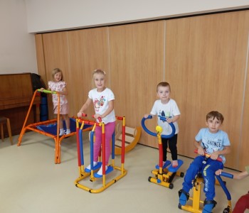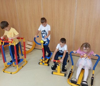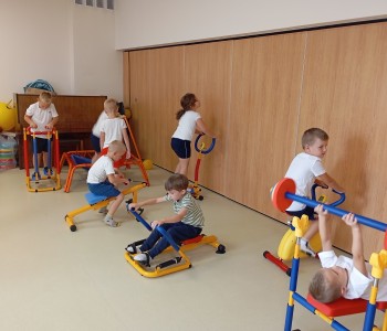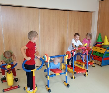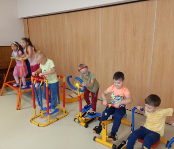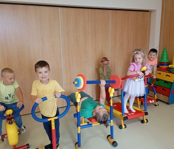 Dzieci z grupy Muminków postanowiły spróbować własnych sił na mini siłowni. Dzieci z zapałem zabrały się za ćwiczenia, mogły same zdecydować na czym i jak długo chcą ćwiczyć. Nikogo do treningu nie trzeba było namawiać bo przedszkolaki wiedzą, że aby być silnym i zdrowym trzeba się ruszać i aktywnie spędzać czas.