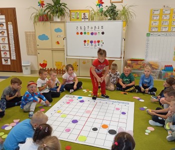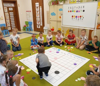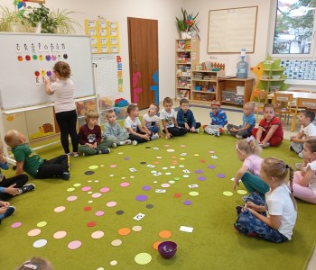 13 września Muminki obchodziły Dzień Kropki. Jest to dzień pełen pomysłowości oraz kreatywności. Dzieci poznały genezę tego święta oraz obejrzały krótką bajkę o dziewczynce Vashti. Historia to uświadomiła przedszkolakom, że każdy z nas ma ukryte zdolności. Tego dnia bawiliśmy się w kodowanie i szukaliśmy kropek. Zauważyliśmy, że kropki towarzyszą nam w codziennym życiu. Na koniec dnia każdy przedszkolak zaprojektował swoją kropkę.