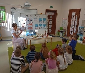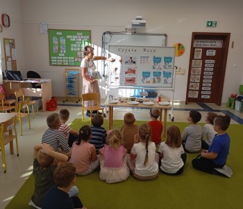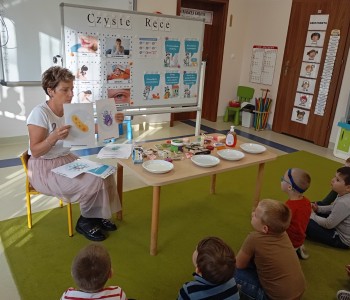 Dnia 15 października na całym świecie obchodzony jest Światowy Dzień Mycia Rąk. Do akcji włączyły się także dzieci z naszego przedszkola. Przedszkolaki z grupy Muminków na spotkaniu z panią Sylwią Kowalewską dowiedziały się jak duże znaczenie dla ich zdrowia i życia ma mycie rąk, które może uchronić przed zakażeniem wieloma chorobami.