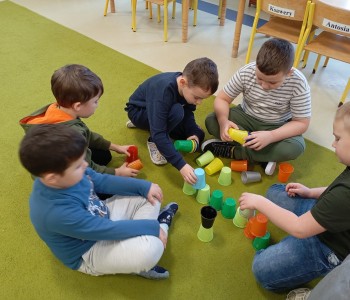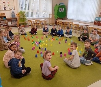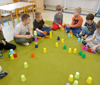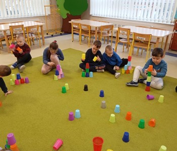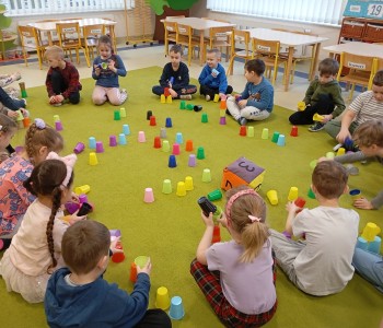 Dzieci z grupy Muminków realizowały zajęcia z zakresu kodowania z wykorzystaniem kolorowych kubeczków. Dzieci układały kubeczki tworząc sekwencje rytmiczne a także realizowały własne pomysły. Dzięki zabawom z kodowania rozwijamy kreatywne i logiczne myślenie, ćwiczymy samodzielność dzieci , poszerzamy ich wyobraźnię i przygotowujemy do nauki programowania.