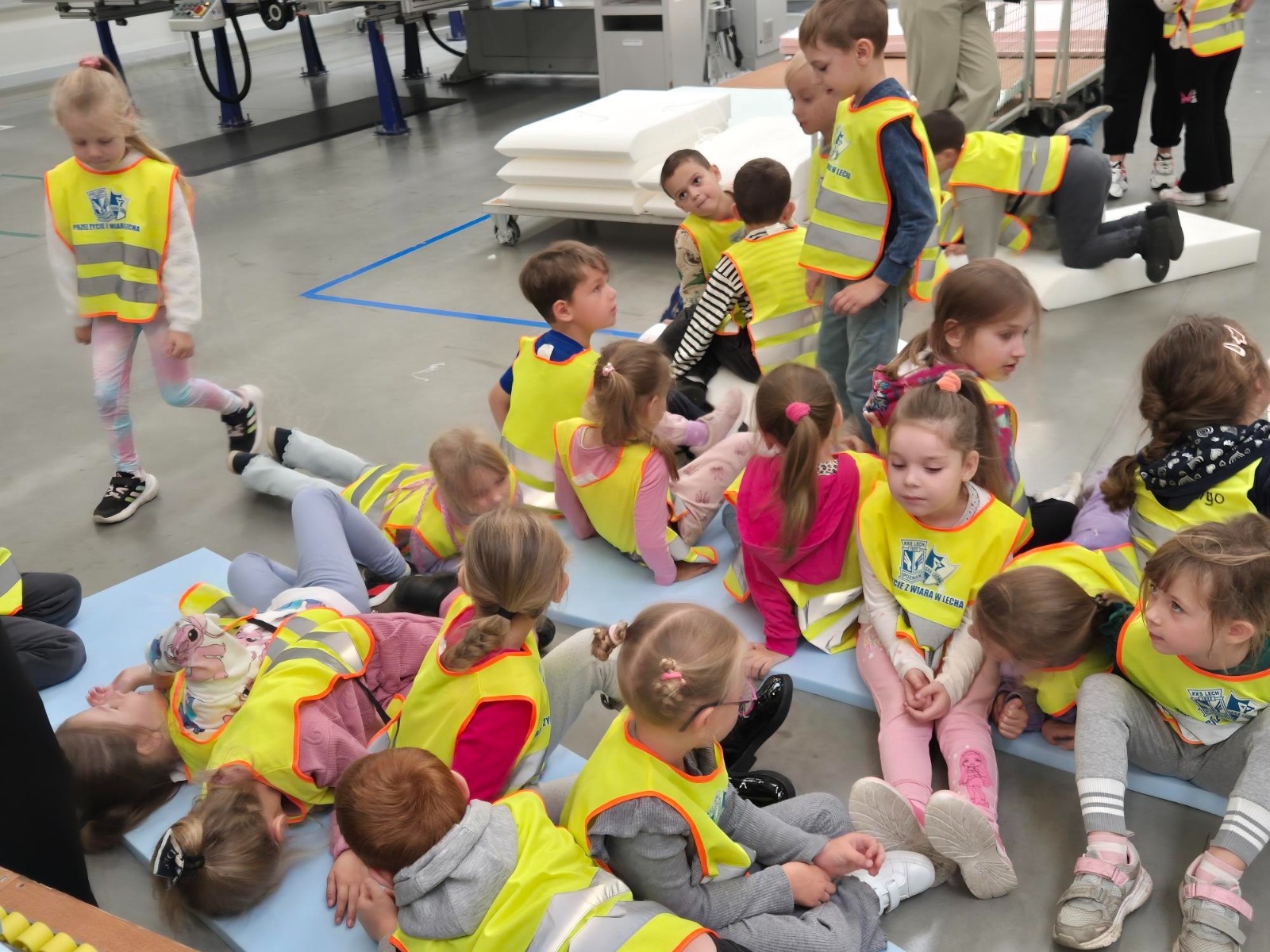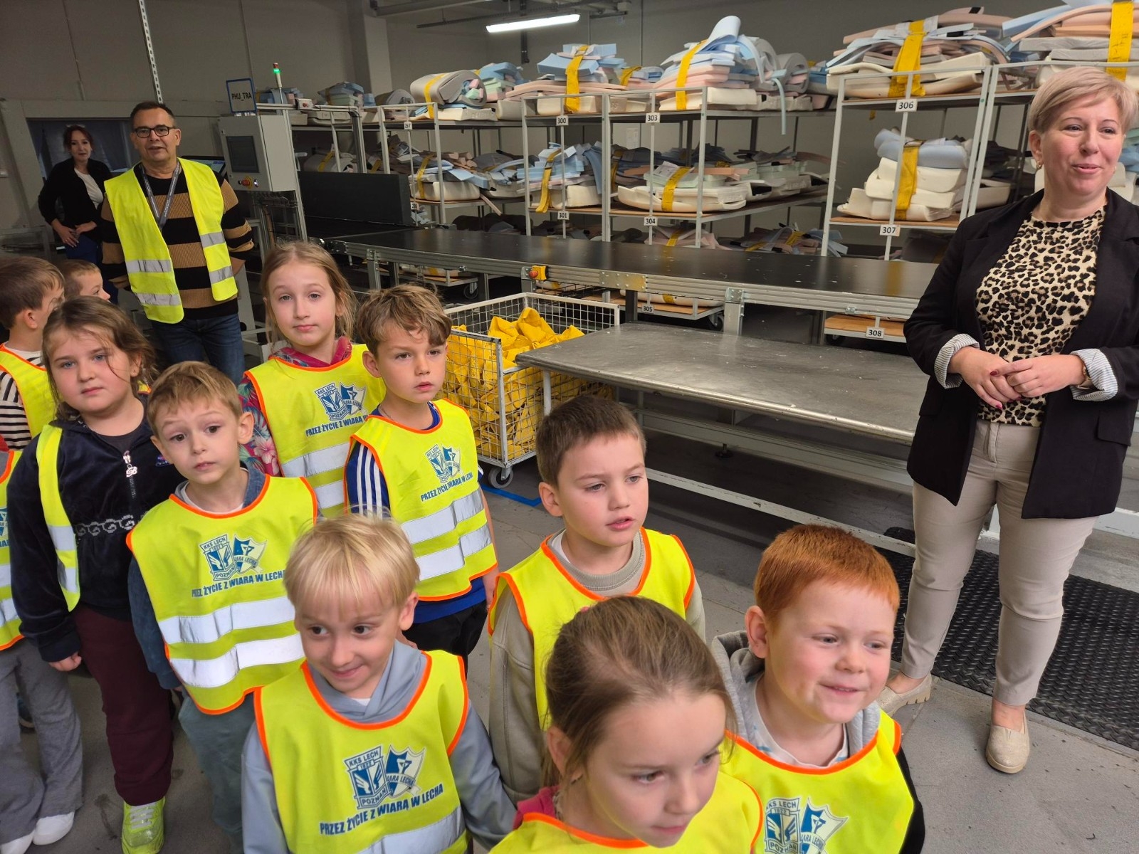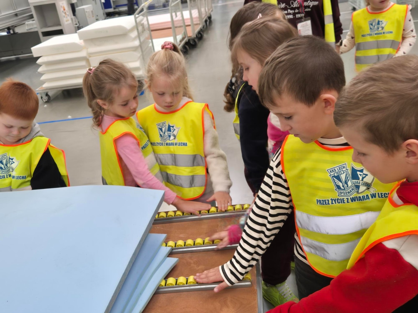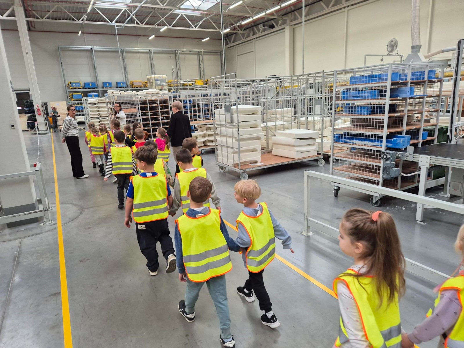 Grupa Muminki została zaproszona na wyjątkową wycieczkę do zakładu POLINOVA Polska w Wągrowcu, gdzie produkowane są nowoczesne meble wypoczynkowe. Dzieci miały okazję zobaczyć z bliska, jak wygląda proces powstawania mebli, które później trafią do domów klientów. Podczas oprowadzania po zakładzie dzieci poznały kolejne etapy produkcji – od przygotowania materiałów przez szycie i tapicerowanie, aż po montaż gotowych elementów. Z zainteresowaniem obserwowały, jak wiele pracy i umiejętności potrzeba, aby powstał wygodny fotel czy kanapa.