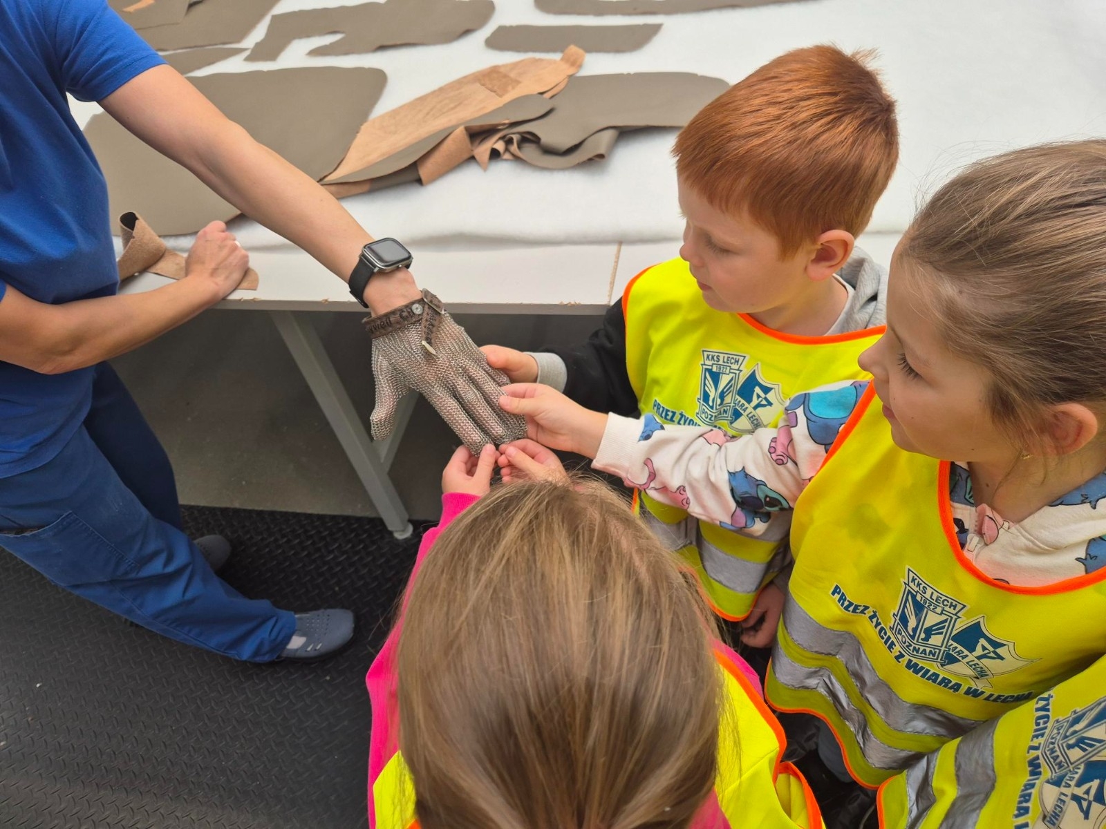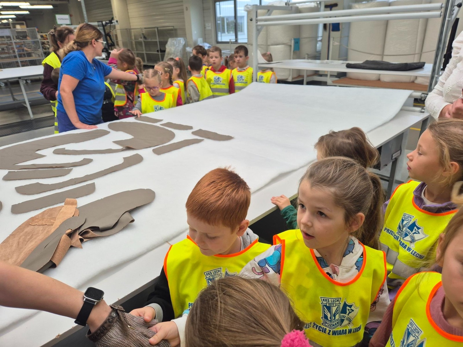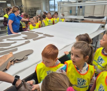 Dowiedziały się również, że do produkcji mebli używane są skóry sprowadzane z różnych krajów. Wycieczka była także okazją do poznania wielu ciekawych zawodów. Dzieci zobaczyły, czym zajmuje się szwacz, tapicer, stolarz, monter i mogły przekonać się, że każdy z tych zawodów ma ogromne znaczenie w procesie tworzenia mebli. Podczas wizyty w zakładzie dzieci sprawdzały dotykiem różne pianki i skóry, a także miały okazję wypróbować wygodne fotele. Na zakończenie czekały na nie miłe niespodzianki – kolorowanki, gąbki o różnych kształtach i ozdobne elementy z drewna. Wycieczka była ciekawą i cenną lekcją, która pokazała jak wiele osób i umiejętności potrzeba, aby powstał wygodny i estetyczny mebel. Serdecznie dziękujemy zakładowi za gościnność i miłe przyjęcie oraz pani Monice za zaproszenie i pani Adriannie za przekazanie dzieciom wielu interesujących informacji. Agnieszka Nowastowska