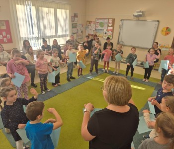 W grupie „Muminków” odbyły się zajęcia otwarte dla rodziców. Celem spotkania było pokazanie rodzicom jak dzieci rozwijają gotowość do nauki czytania i liczenia poprzez wspólną zabawę, ruch i działania sensoryczne.