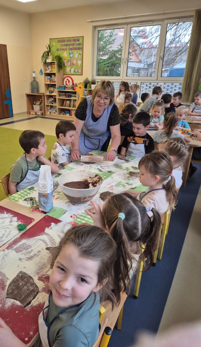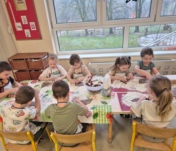Pierwszego dnia grudnia w sali Muminków unosił się wyjątkowy zapach – zapach świeżo upieczonych pierników. Dzieci z ogromnym zaangażowaniem uczestniczyły w zajęciach kulinarnych, które połączyły naukę, zabawę i świąteczną atmosferę.