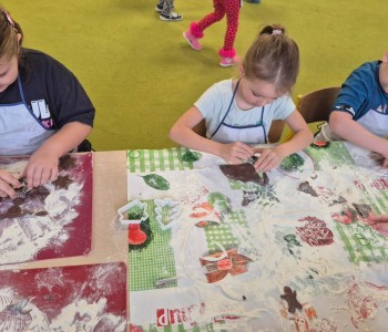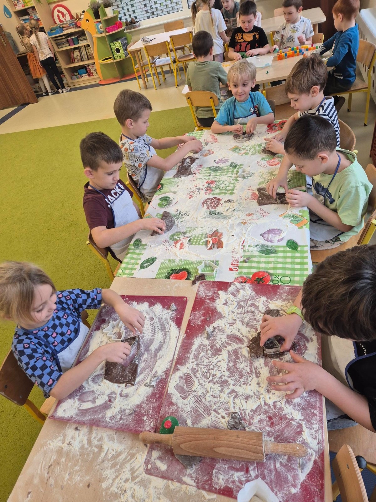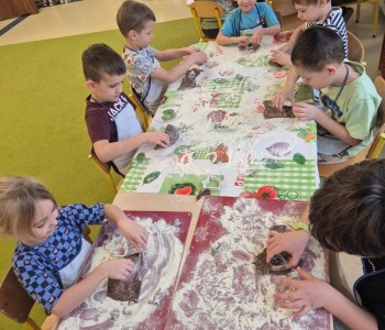 Muminki doskonale znały przepis i potrafiły wymienić wszystkie potrzebne składniki. Najwięcej radości sprawiło przedszkolakom wykrawanie różnych kształtów z rozwałkowanego ciasta – serc, choinek, gwiazdek, bałwanków i wielu innych. Gotowe pierniczki zostały zaniesione do przedszkolnej kuchni. Kiedy upieczone trafiły na kolorowe talerze dzieci zajadały je ze smakiem i zachwycały się wspaniałym aromatem. To był naprawdę smakowity dzień w grupie Muminków!