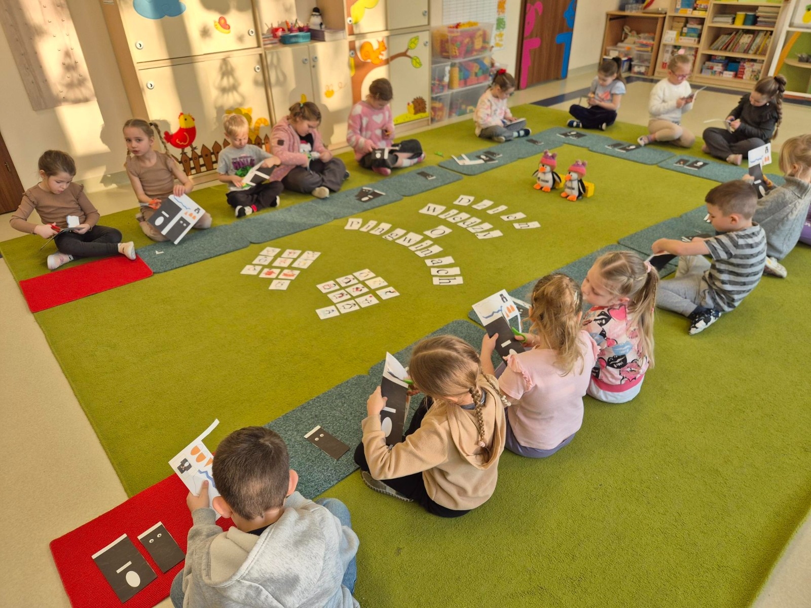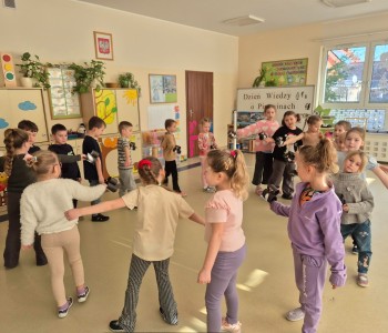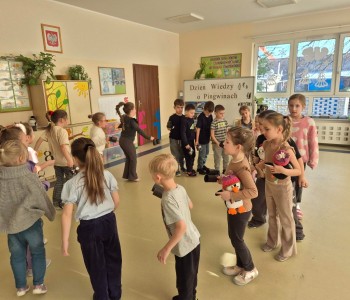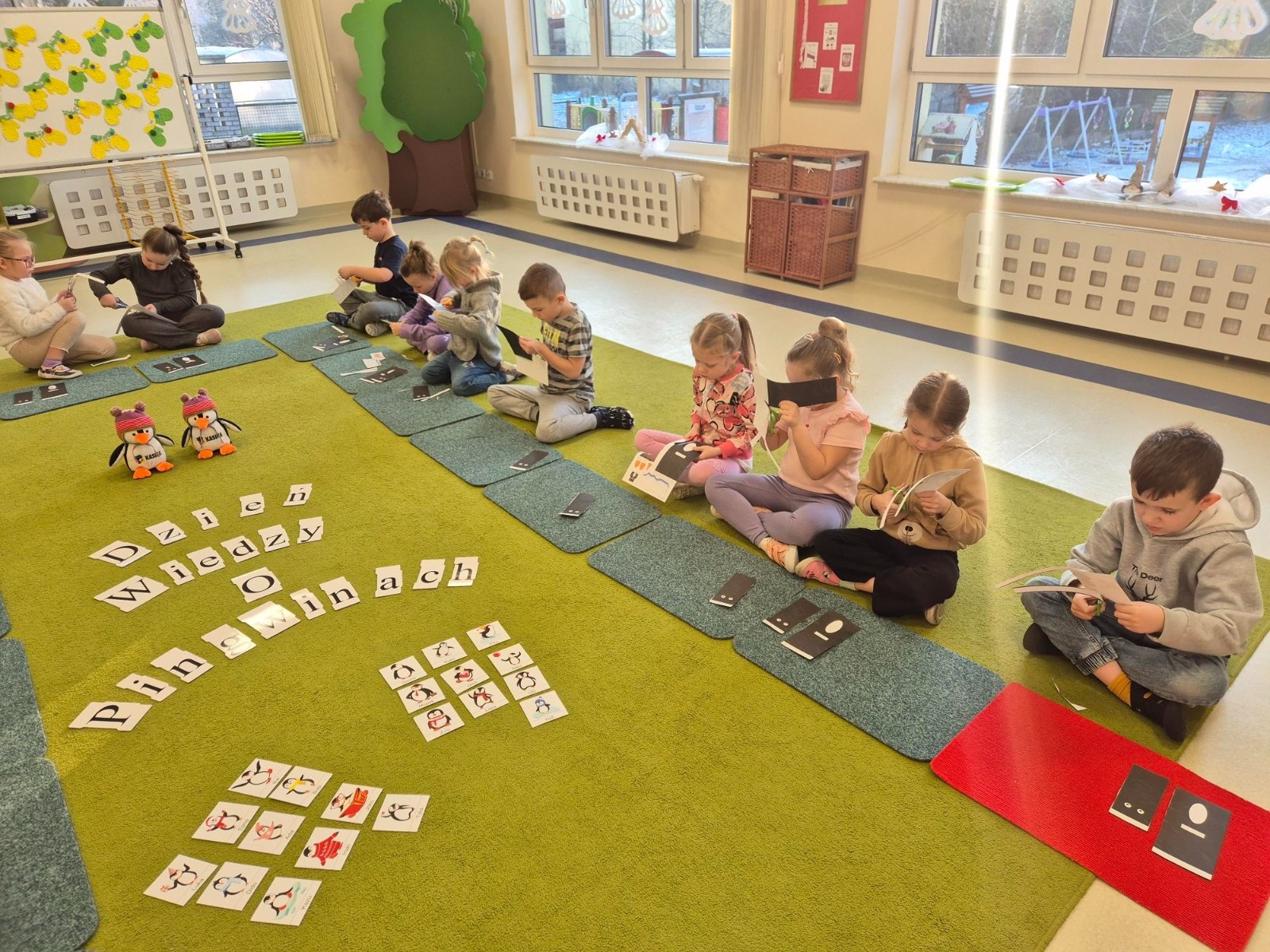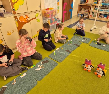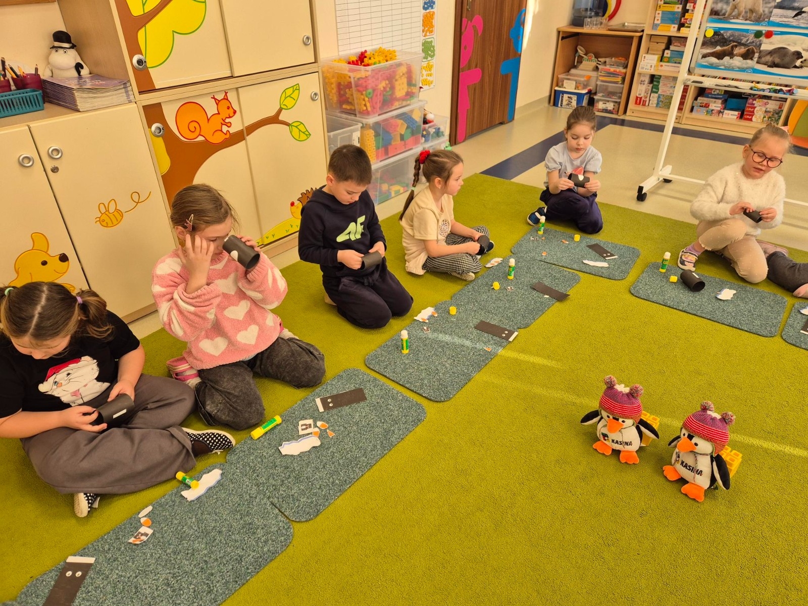 Swoją wiedzę sprawdziły w wesołym quizie, z którym poradziły sobie znakomicie – zapamiętały naprawdę mnóstwo ciekawostek! Nie zabrakło też pingwinich zabaw muzyczno-ruchowych – każdy na chwilę zamienił się w pingwina i otrzymał zabawne imię. Było dużo śmiechu i radosnego „chodzenia jak pingwin”. Ćwicząc sprawność manualną, dzieci wykonały piękne papierowe pingwiny, które wykorzystaliśmy do zajęcia matematycznego doskonaląc znajomość kierunków w przestrzeni. Na zakończenie tego wyjątkowego dnia wszyscy mali uczestnicy otrzymali Dyplom Pingwiniego Odkrywcy – bo każdy Muminek udowodnił, że zna się na pingwinach jak prawdziwy ekspert!