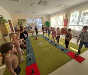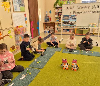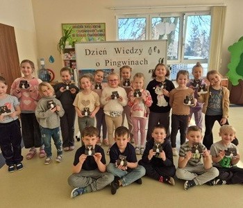 Z okazji Dnia Wiedzy o Pingwinach. Muminki uczestniczyły w ciekawych zajęciach, podczas których wyruszyły w mroźną podróż na biegun, aby poznać niezwykłe życie pingwinów. Korzystając z kolorowych ilustracji przyrodniczych oraz prezentacji multimedialnej, przedszkolaki dowiedziały się, gdzie żyją pingwiny, co jedzą oraz jak świetnie pływają i nurkują.